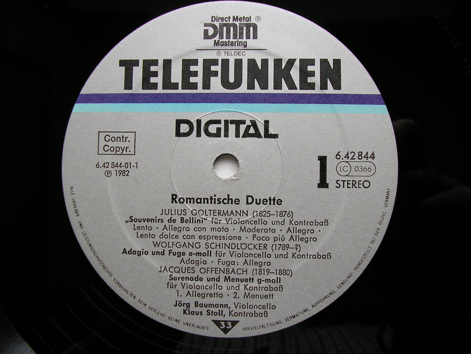 6.42844  GOLTERMANN: 'Souvenirs de Bellini' / SCHINDLOCKER: ADAGIO & FUGUE / OFFENBACH: SERENADE & MINUET / ROMBERG: SONATA in C / VIOTTI: DUETTO SCHERZANDO / VANHAL: THEME & VARIATIONS / MONN: MINUET in D    KLAUS STOLL, double bass / JORG BAUMANN, cello