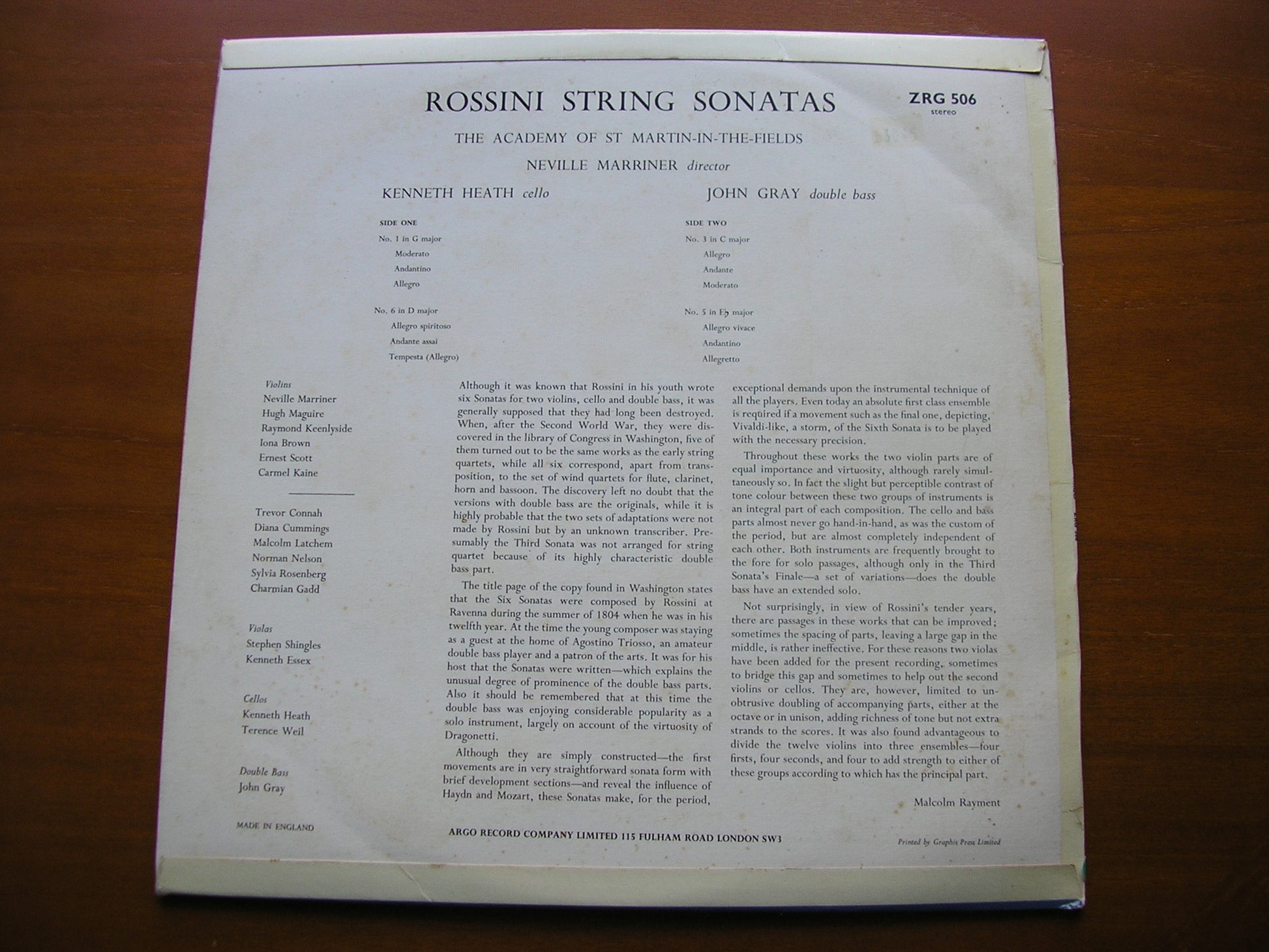 ZRG 506  ROSSINI: STRING SONATAS   NEVILLE MARRINER / ACADEMY OF SAINT MARTIN IN THE FIELDS