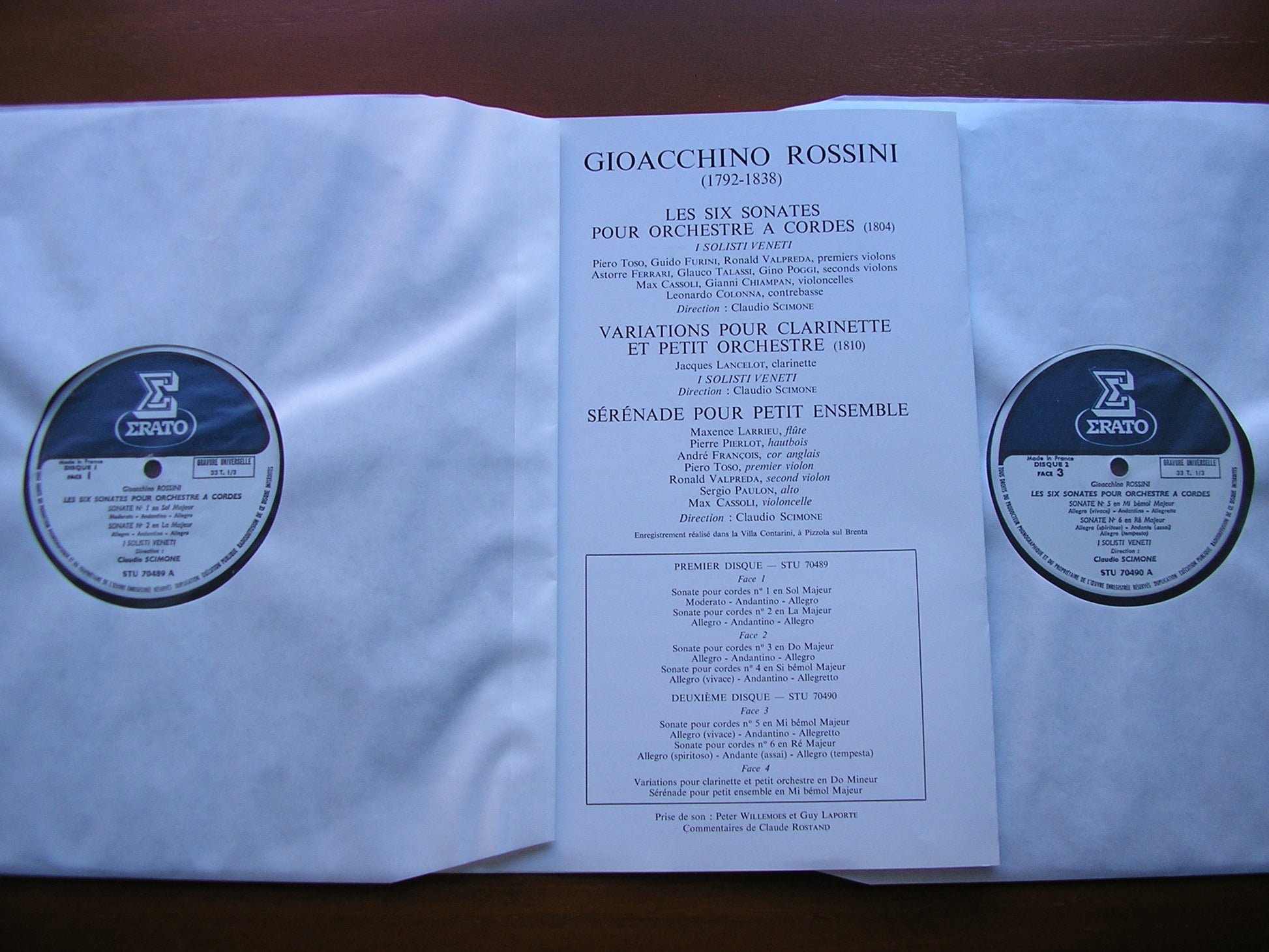 STU 70489 / 90  ROSSINI: STRING SONATAS Nos. 1 - 6 / VARIATIONS FOR CLARINET        JACQUES LANCELOT / I SOLOISTSI VENETI / CLAUDIO SCIMIONE