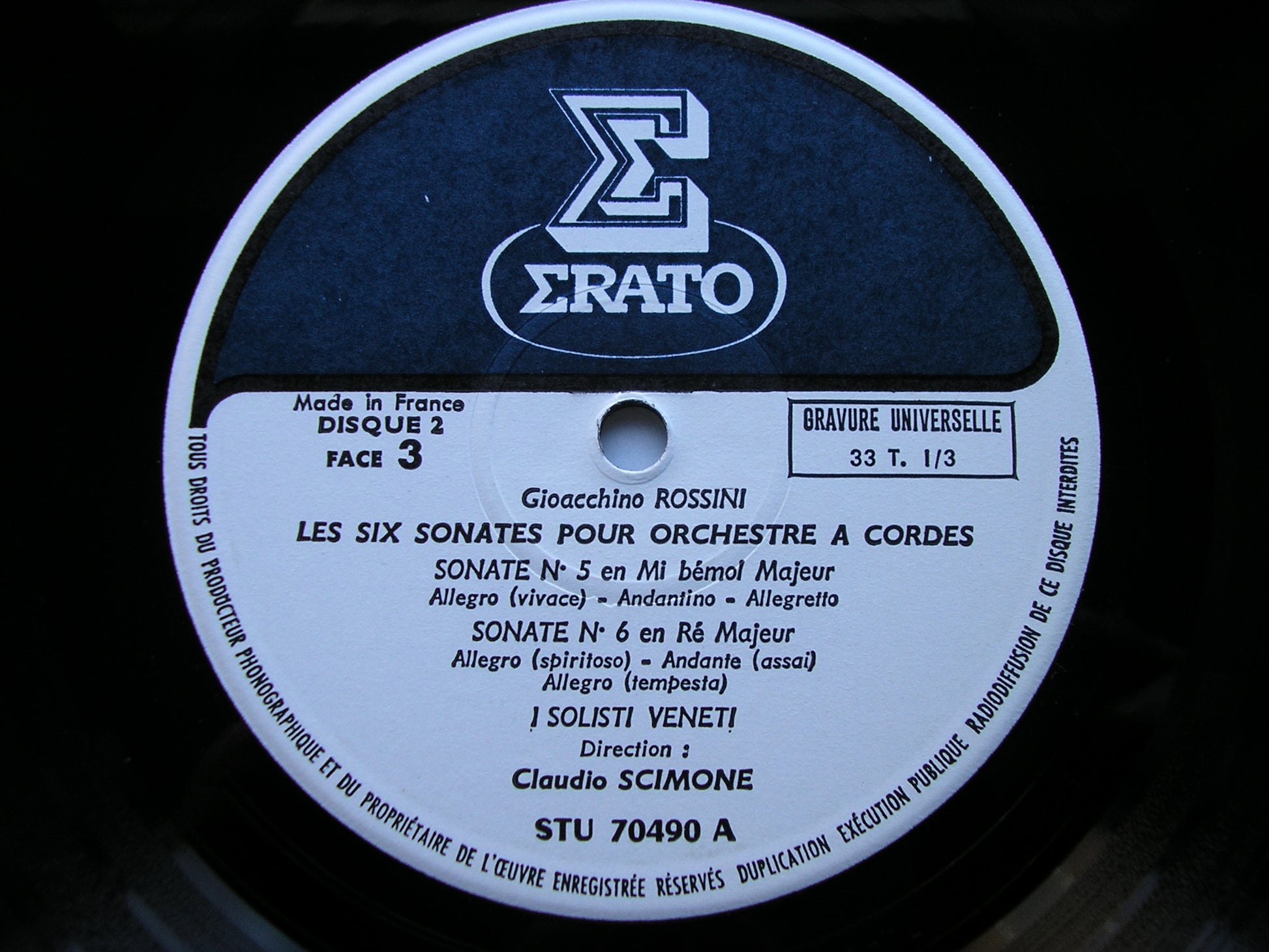 ROSSINI: STRING SONATAS Nos. 1 - 6 / VARIATIONS I SOLOISTI VENETI / SCIMIONE 2 LP STU 70489 / 90