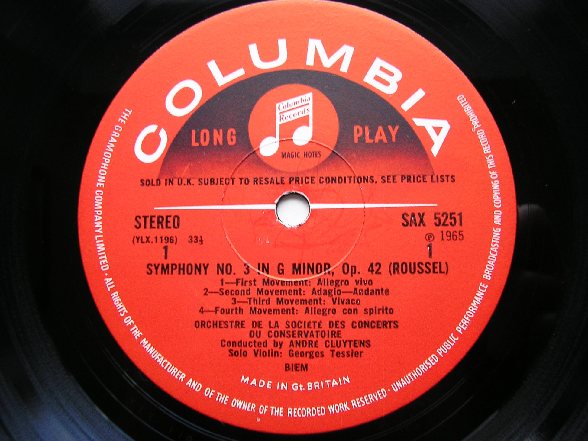 SAX 5251  ROUSSEL: SYMPHONIES Nos. 3 & 4       ANDRE CLUYTENS / PARIS CONSERVATOIRE ORCHESTRA