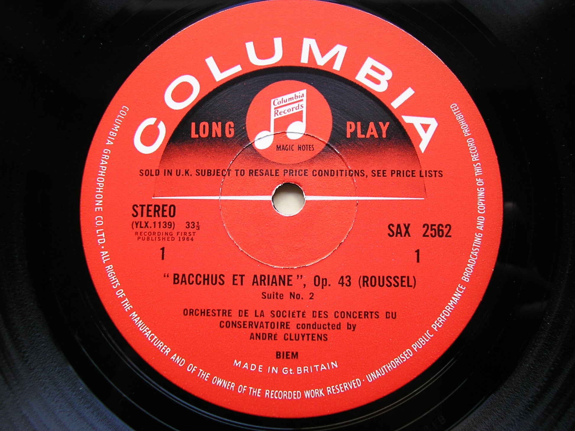 SAX 2562  ROUSSEL: THE SPIDER'S BANQUET / SINFONIETTA / BACCHUS & ARIADNE Suite No. 2       ANDRE CLUYTENS / PARIS CONSERVATOIRE ORCHESTRA