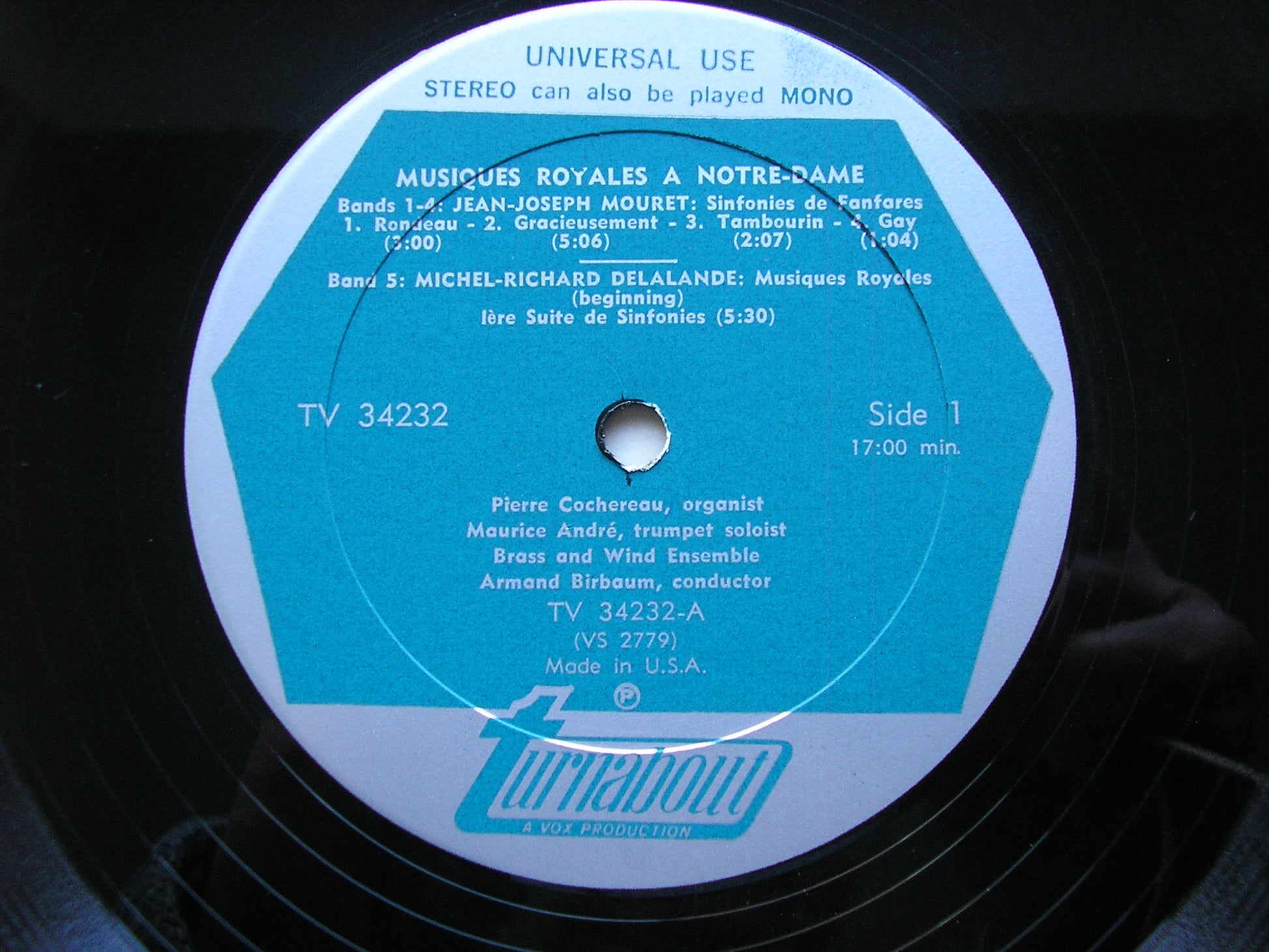 TV 34232  MOURET: SINFONIES & FANFARES / DE LALANDE: MUSIQUES ROYALES / LULLY: MARCHE ROYALE      PIERRE COCHEREAU / MAURICE ANDRE / BRASS & WIND ENSEMBLE / ARMAND BIRBAUM
