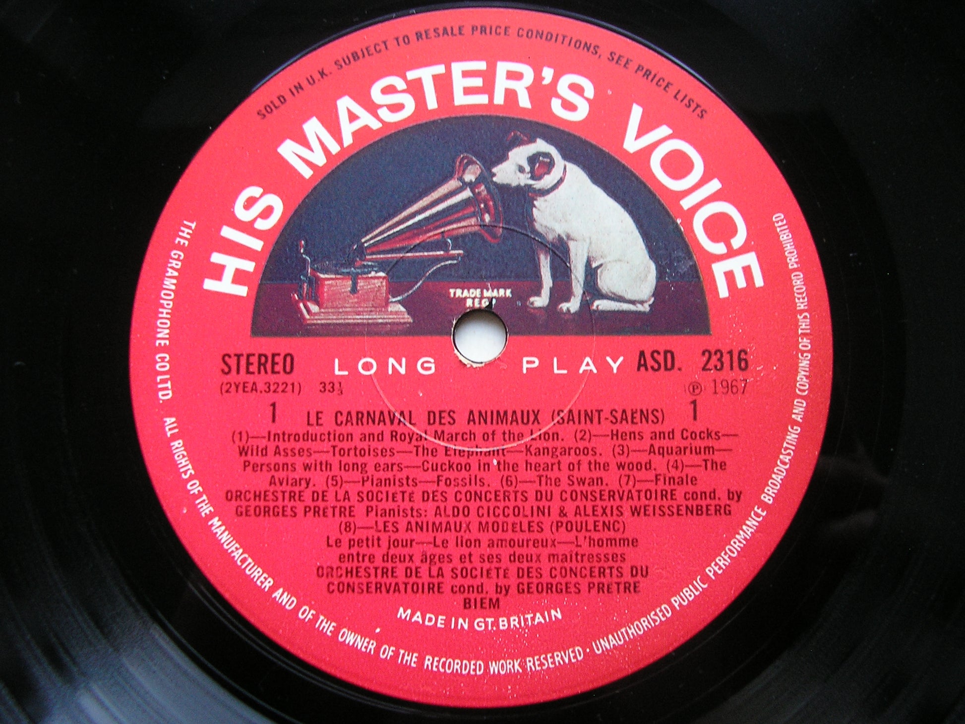 ASD 2316  SAINT-SAENS: CARNIVAL OF THE ANIMALS     ALEXIS WEISSEBERG / ALDO CICCOLINI / PARIS CONSERVATOIRE ORCHESTRA / GEORGES PRETRE