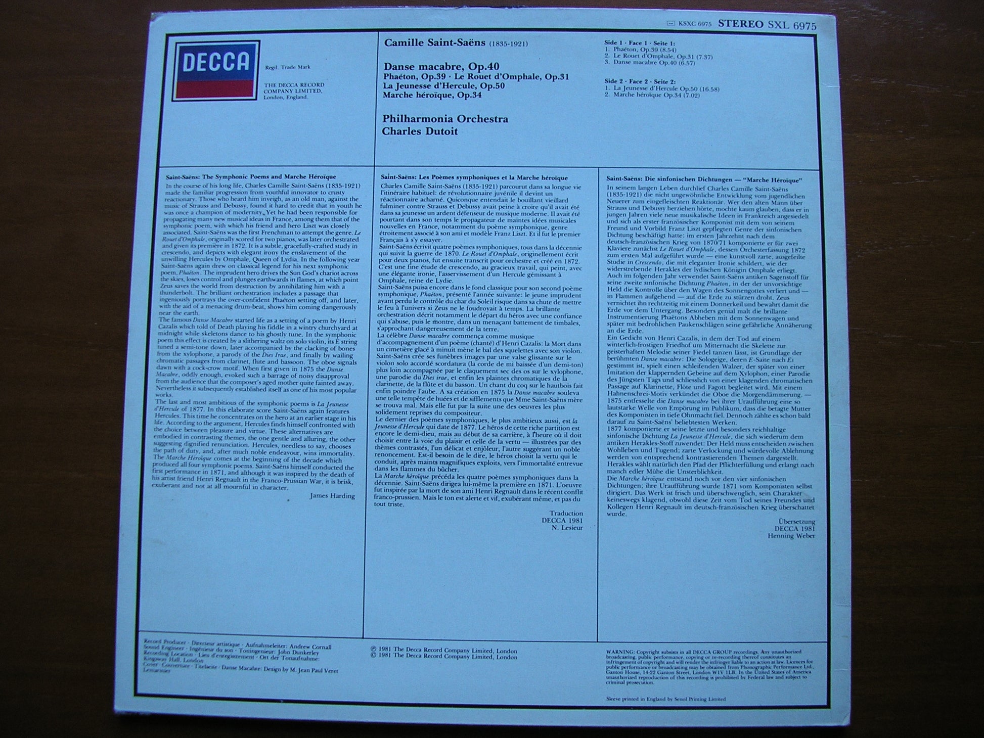 SXL 6975  SAINT-SAENS: ORCHESTRAL WORKS     CHARLES DUTOIT / PHILHARMONIA ORCHESTRA