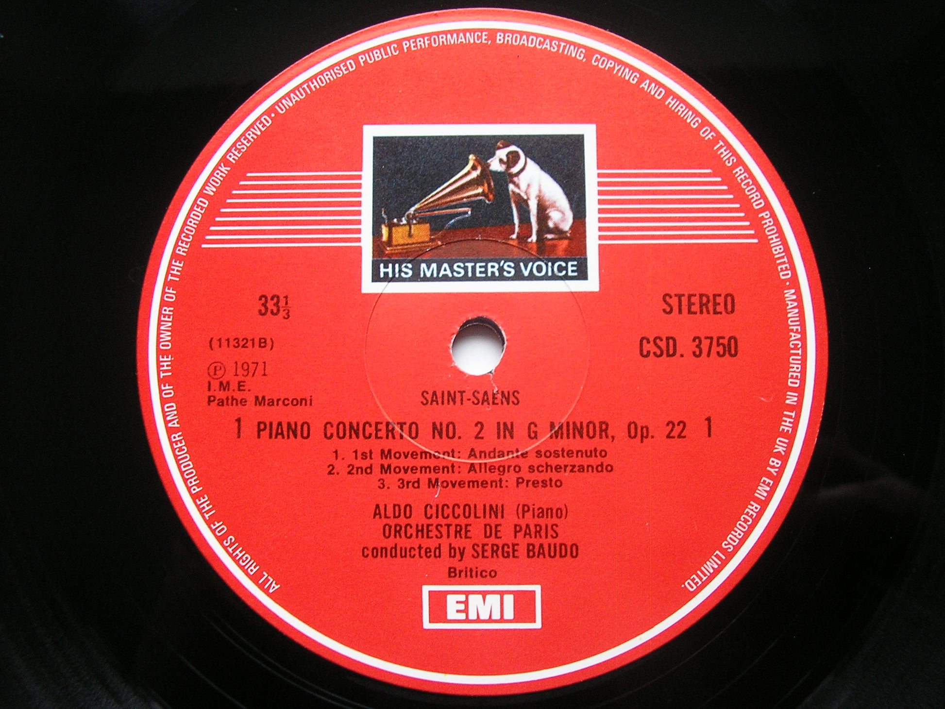 CSD 3750  SAINT-SAENS: PIANO CONCERTOS Nos. 2 & 4    ALDO CICCOLINI / ORCHESTRE DE PARIS / SERGE BAUDO