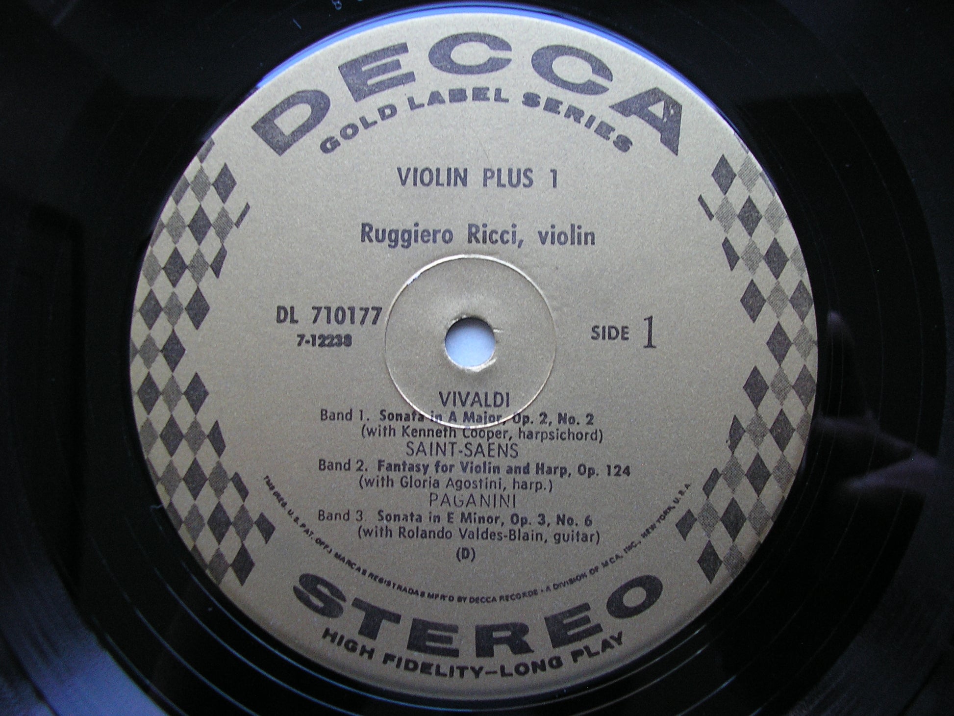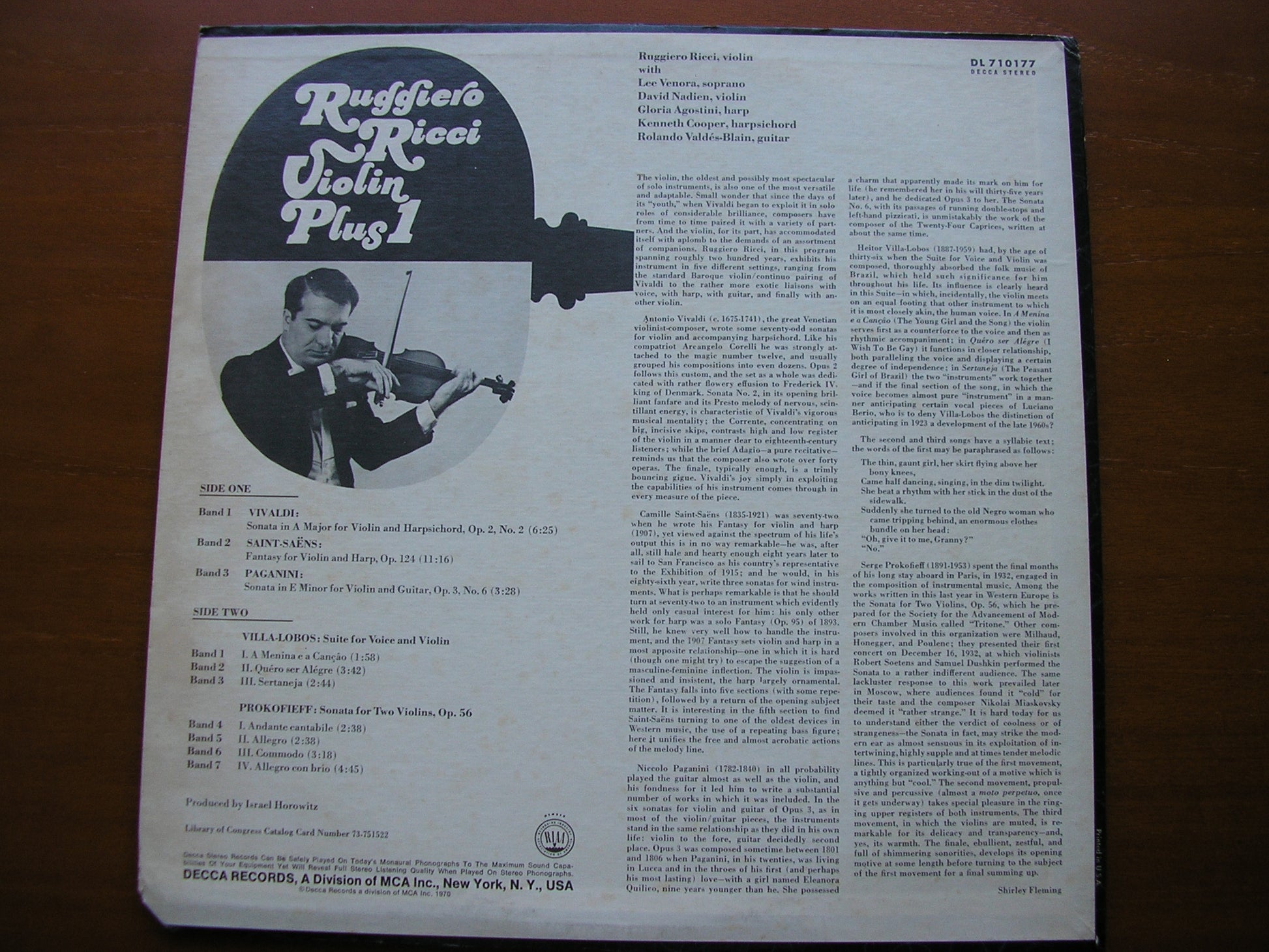 DL 710177  VILLA LOBOS: SUITE FOR VOICE & VIOLIN / PAGANINI: SONATA FOR VIOLIN & GUITAR / PROKOFIEV: SONATA FOR TWO VIOLINS / VIVALDI: SONATA FOR VIOLN & HARPSICHORD / SAINT-SAENS: FANTASY FOR VIOLIN & HARP     RUGGIERO RICCI / LEE VENORA / DAVID NADIEN / GLORIA AGOSTINI / KENNETH COOPER / VALDES - BLAIN