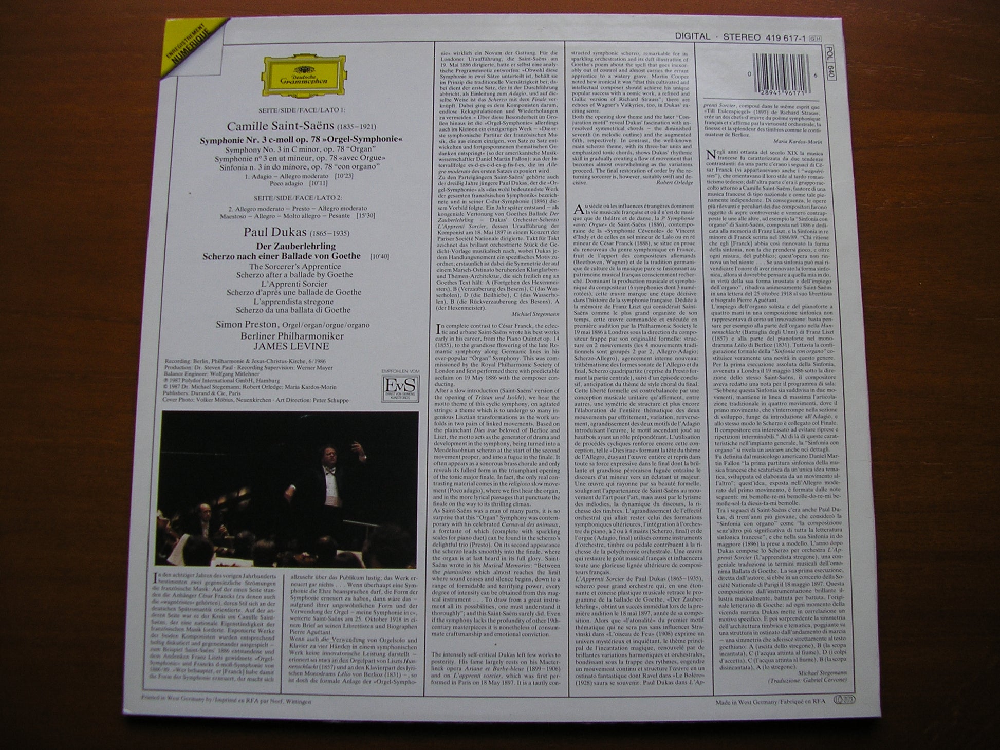 419 617  SAINT - SAENS: SYMPHONY No. 3 / DUKAS: L'APPRENTI SORCIER     JAMES LEVINE / BERLIN PHILHARMONIC ORCHESTRA