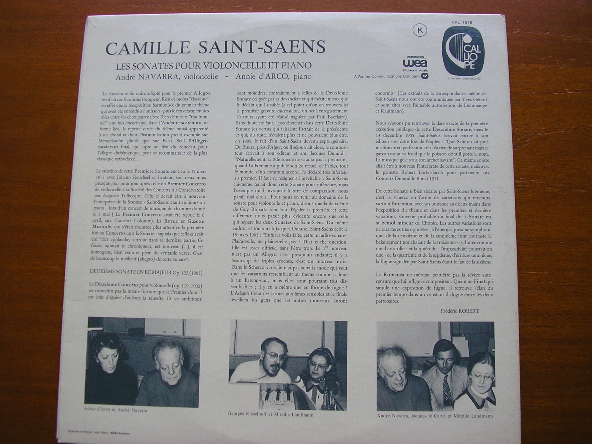 CAL 1818  SAINT-SAENS: THE TWO SONATAS FOR CELLO & PIANO    ANDRE NAVARRA / ANNIE D'ARCO