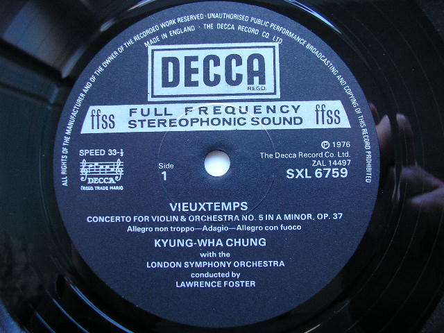 SXL 6759  SAINT-SAENS: VIOLIN CONCERTO NO. 3 / VIEUXTEMPS: VIOLIN CONCERTO No. 5  KYUNG-WHA CHUNG / LONDON SYMPHONY ORCHESTRA / LAWRENCE FOSTER