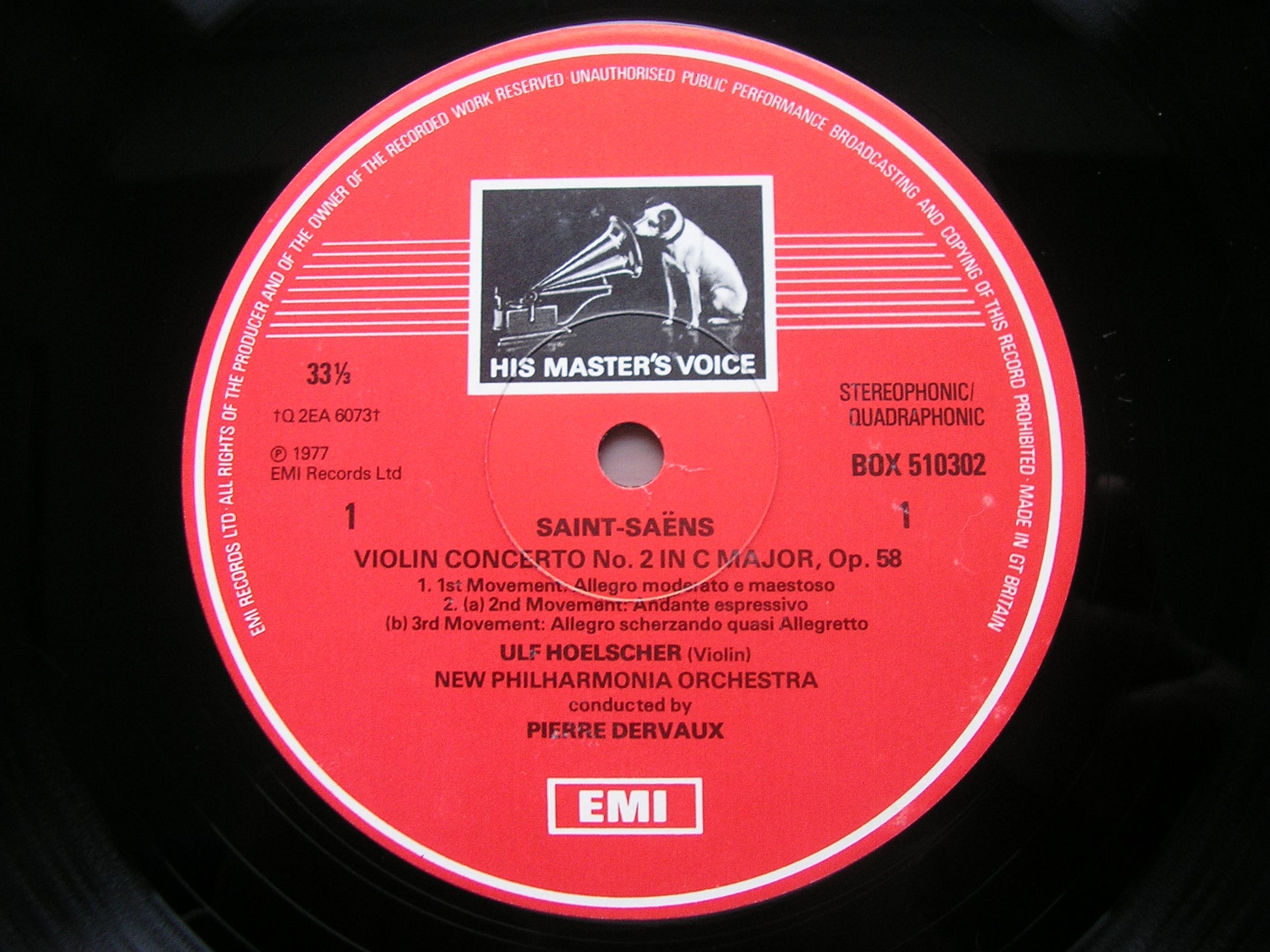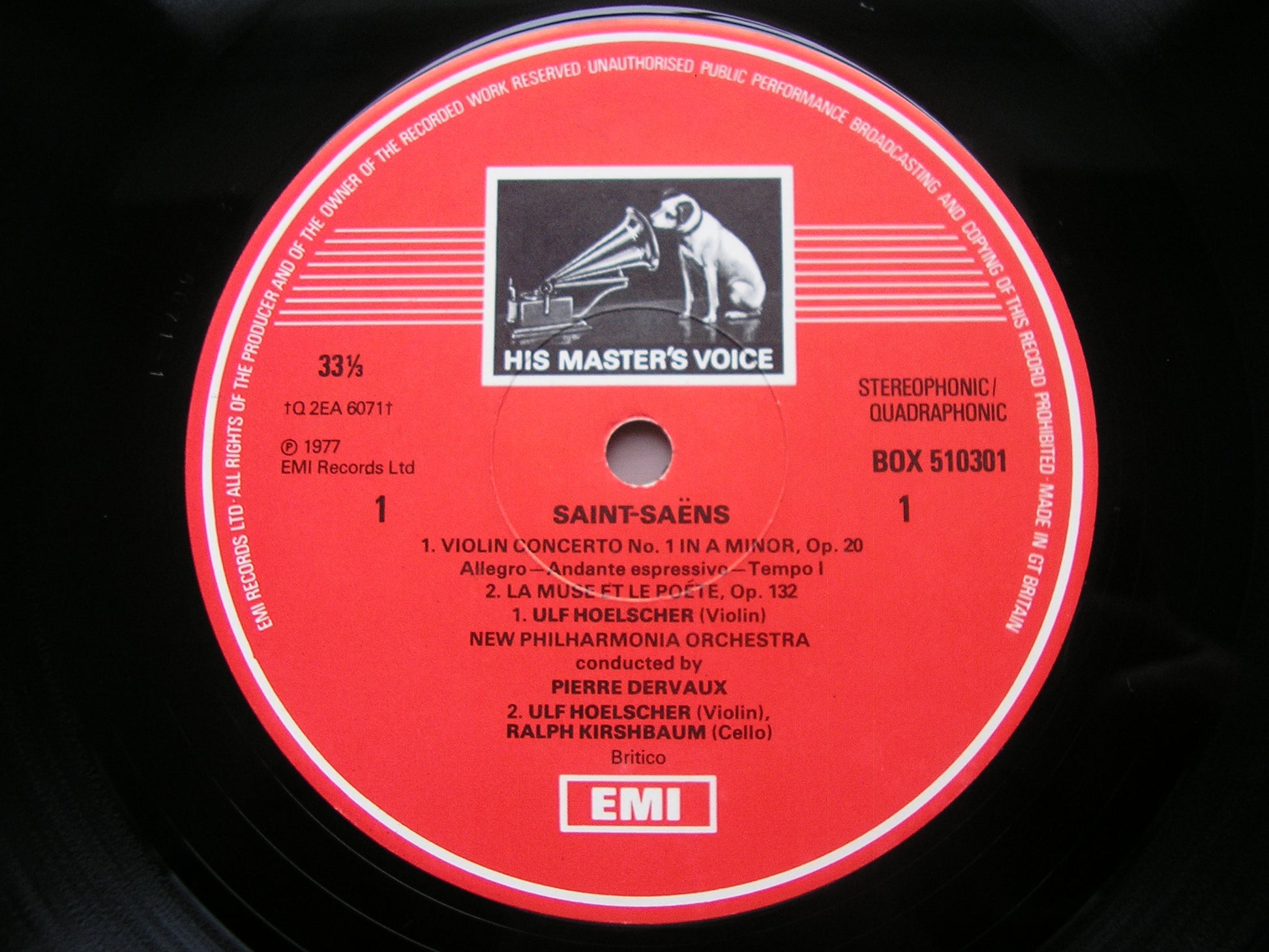 SLS 5103  SAINT-SAENS: VIOLIN CONCERTOS / HAVANAISE / INTRODUCTION & RONDO CAPRICCIOSO / CAPRICE Op. 52 / ROMANCES / MORCEAU DE CONCERT   ULF HOELSCHER / NEW PHILHARMONIA ORCHESTRA / PIERRE DERVAUX
