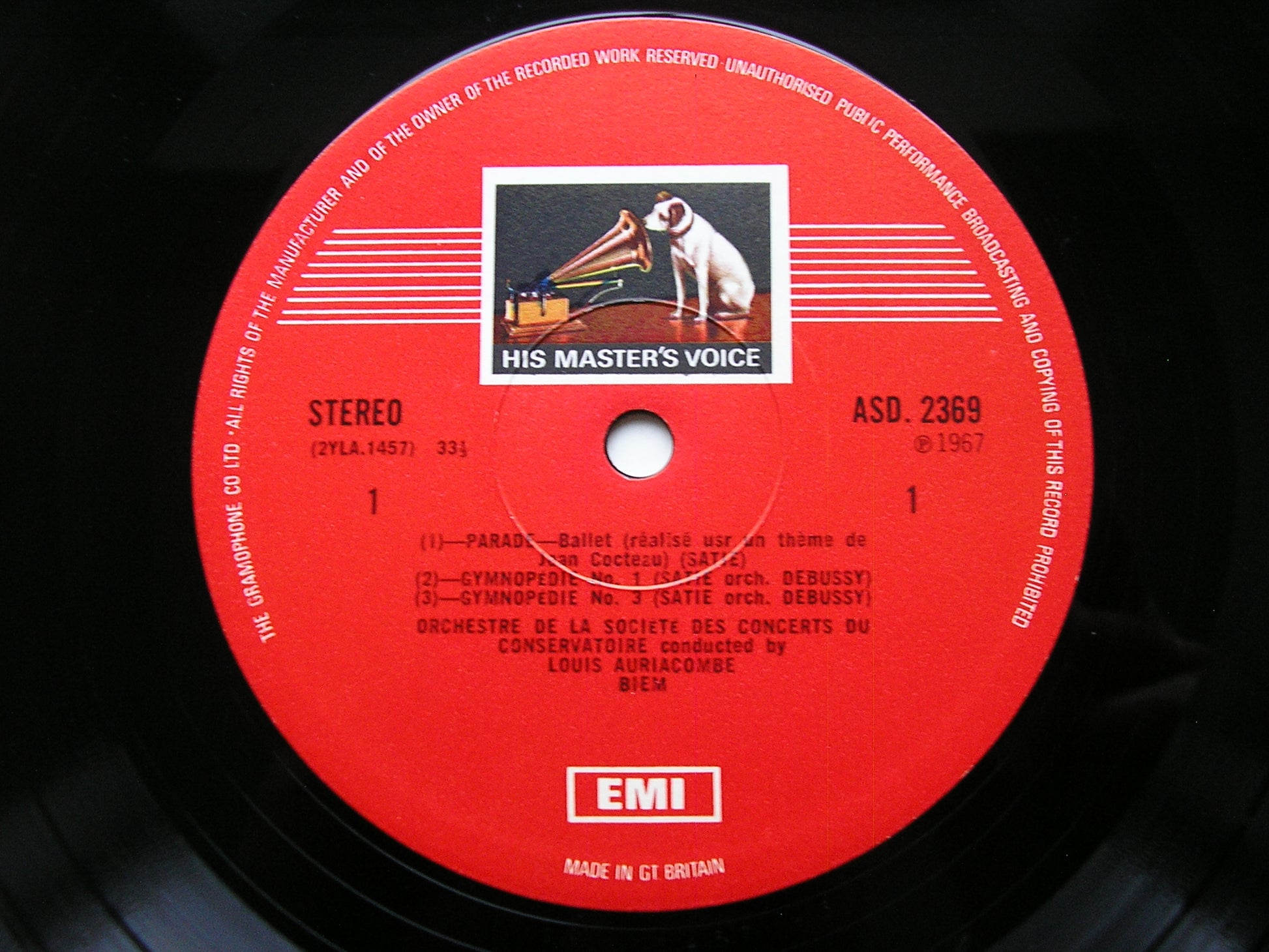 ASD 2369  SATIE: RELACHE / PARADE / GYMNOPEDIES Nos. 1 & 3      LOUIS AURIACOMBE / PARIS CONSERVATOIRE ORCHESTRA