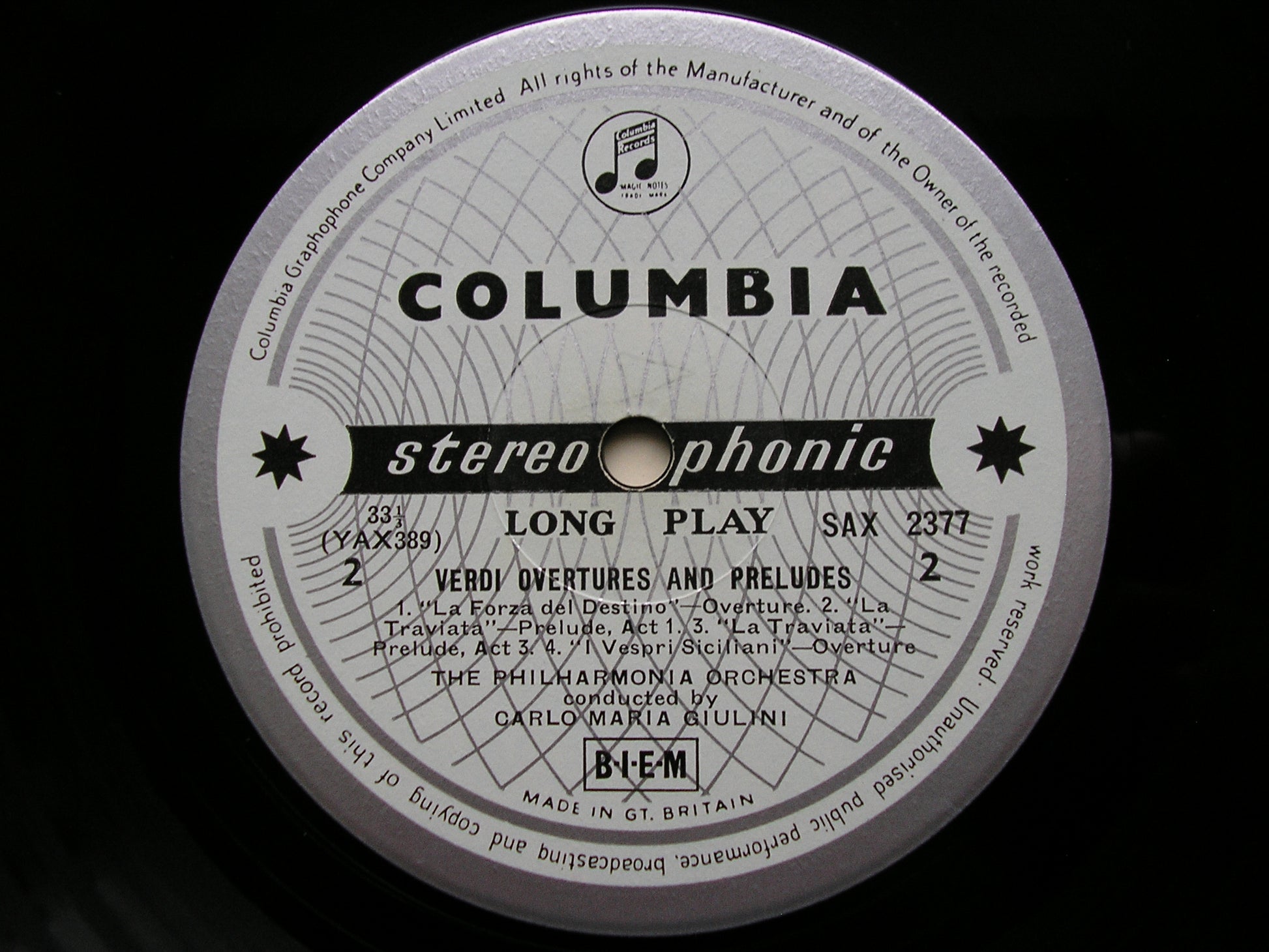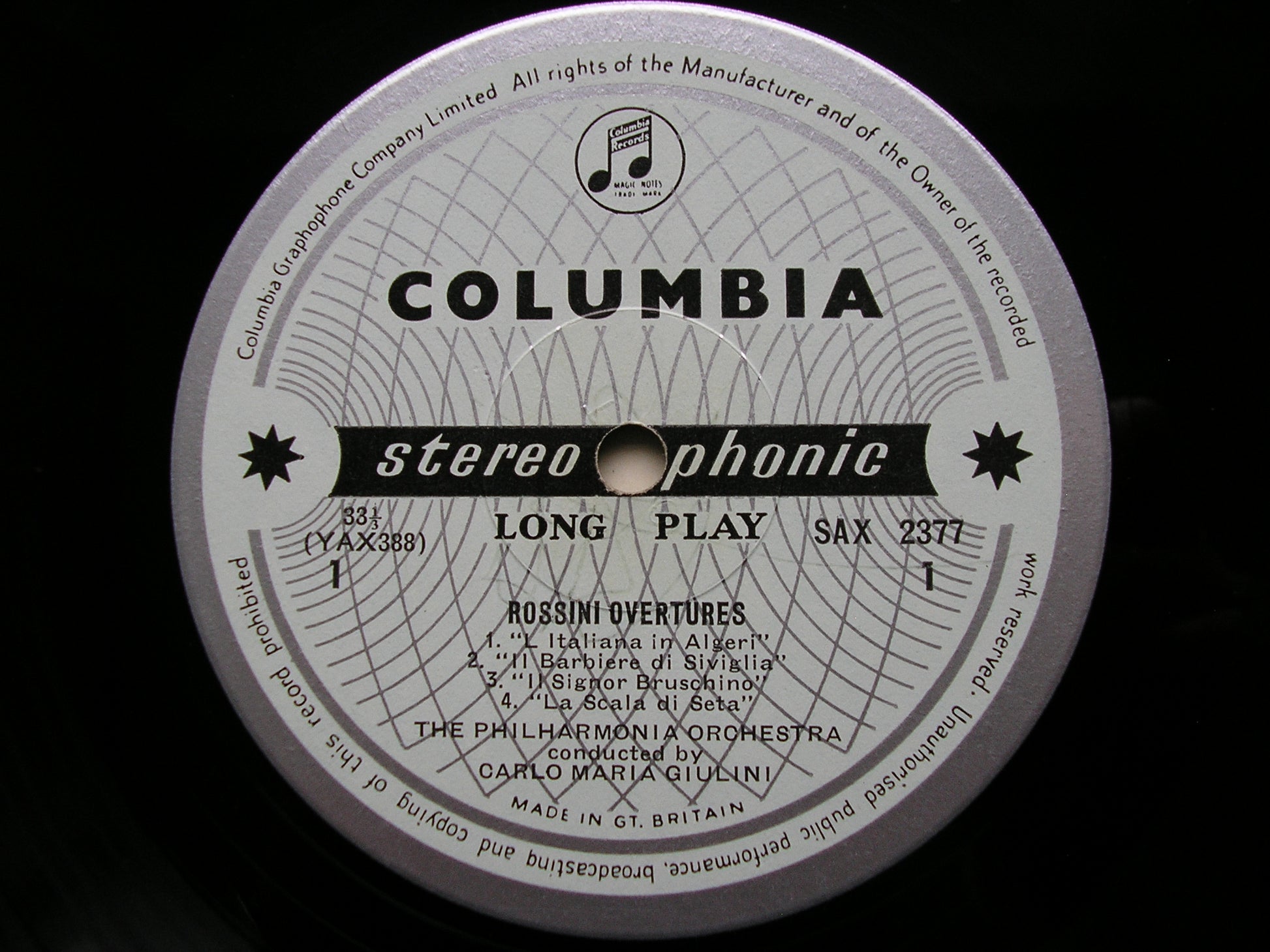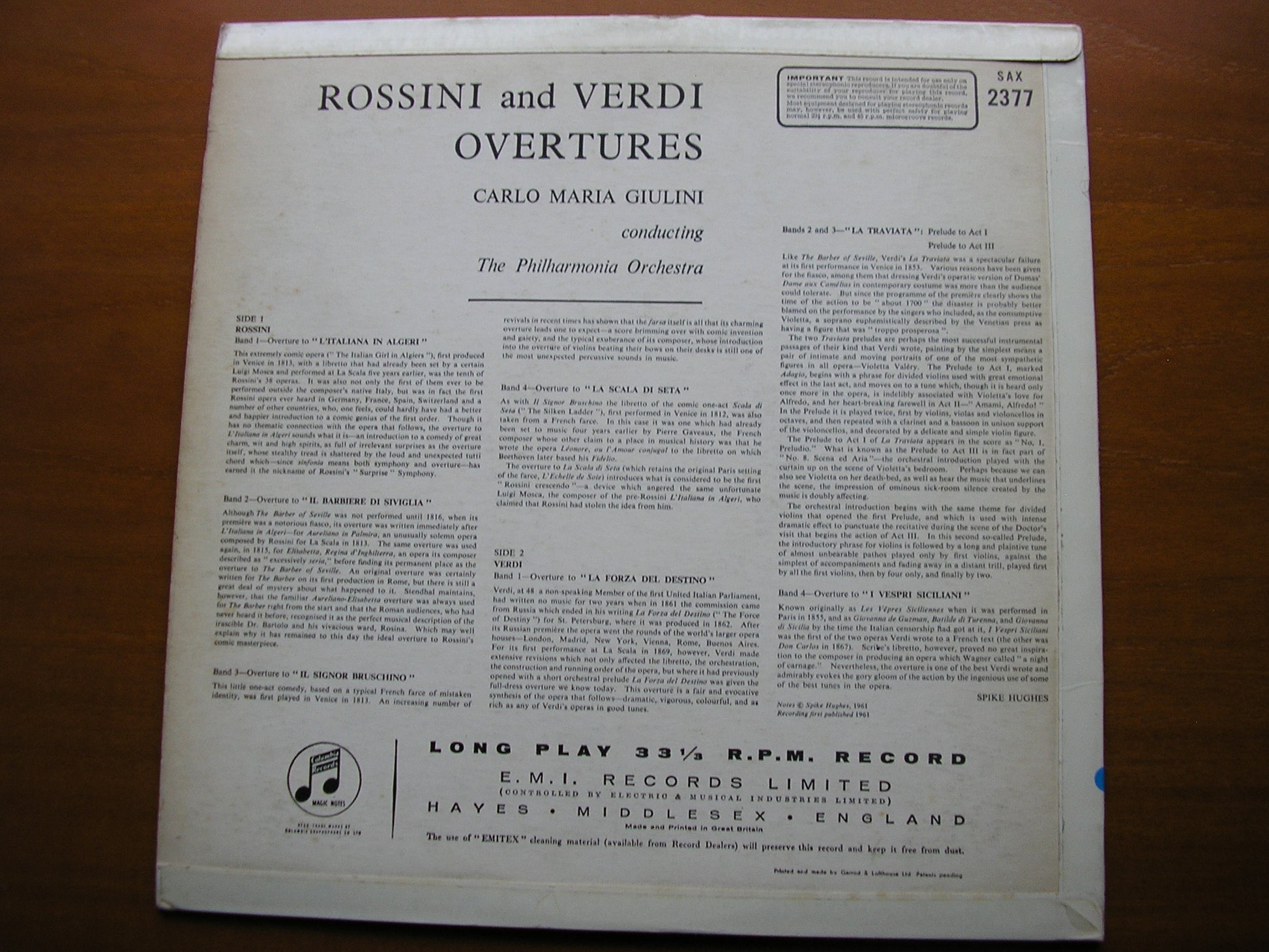 SAX 2377  ROSSINI: FOUR OVERTURES / VERDI: TWO OVERTURES & PRELUDES from LA TRAVIATA        CARLO MARIA GIULINI / PHILHARMONIA ORCHESTRA