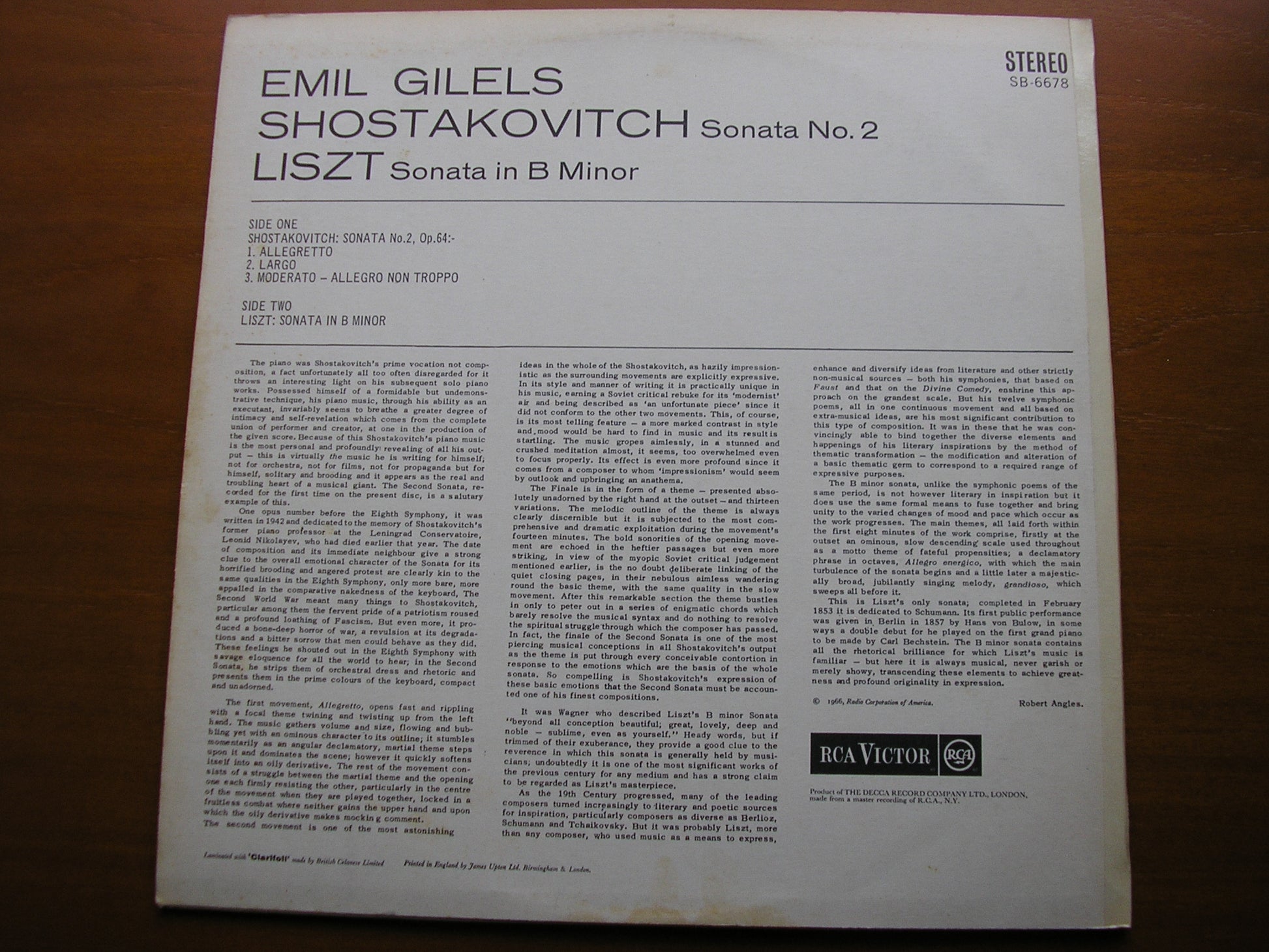 SB 6678  LISZT: SONATA in B Minor / SHOSTAKOVICH: SONATA No. 2     EMIL GILELS