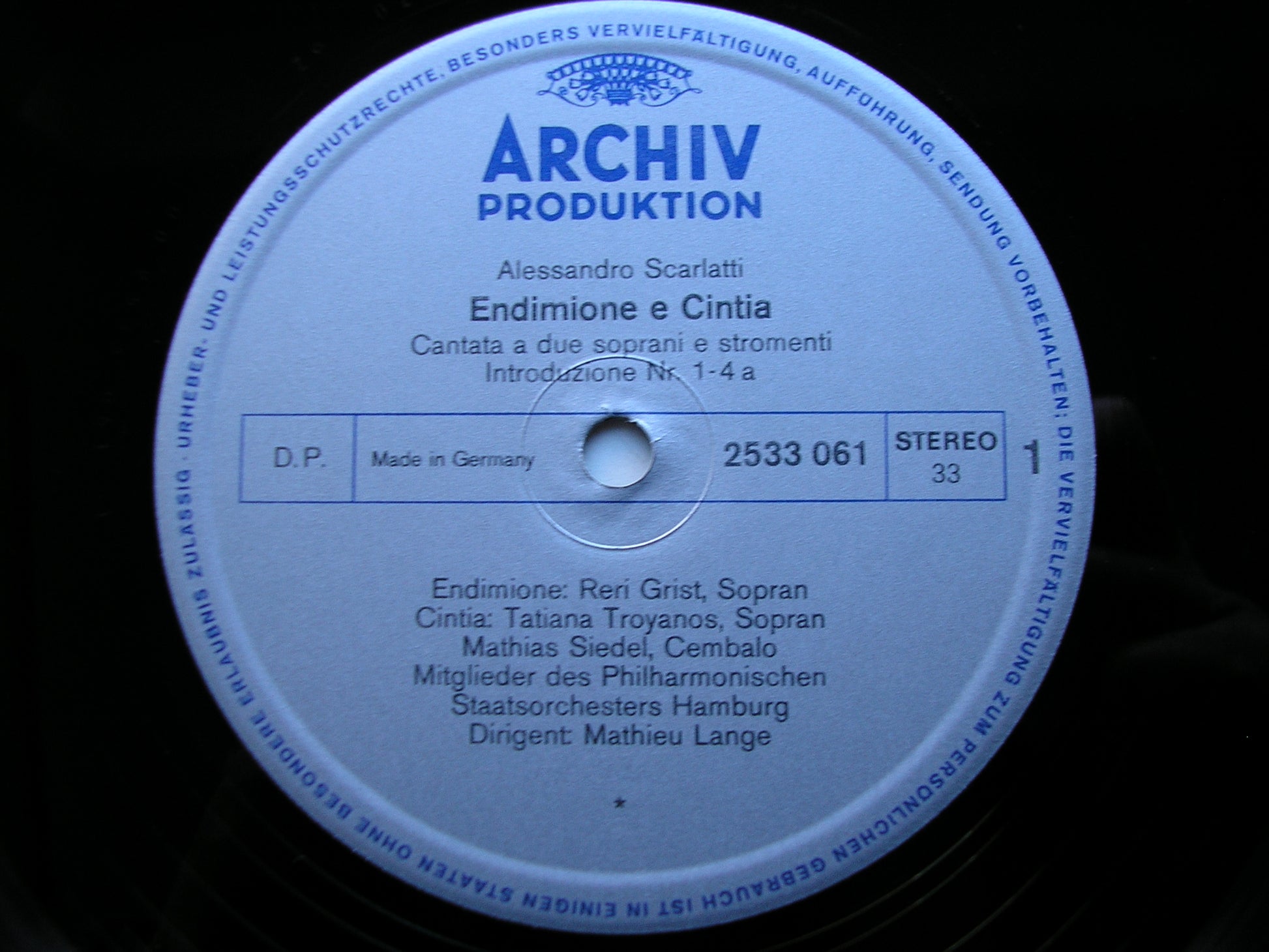 2533 061  ALESSANDRO SCARLATTI: ENDIMIONE E CINTIA     RERI GRIST / TATIANA TROYANOS / HAMBURG STATE ORCHESTRA / MATHIEU LANGE
