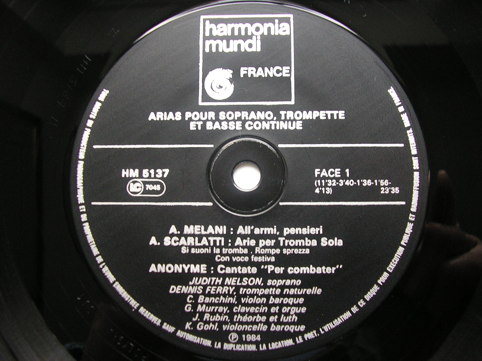 HM 5137  SCARLATTI / MELANI: ARIAS & CANTATAS FRO SOPRANO / TRUMPET & BASS CONTINUO   JUDITH NELSON / DENNIS FERRY / CONTINUO GROUP