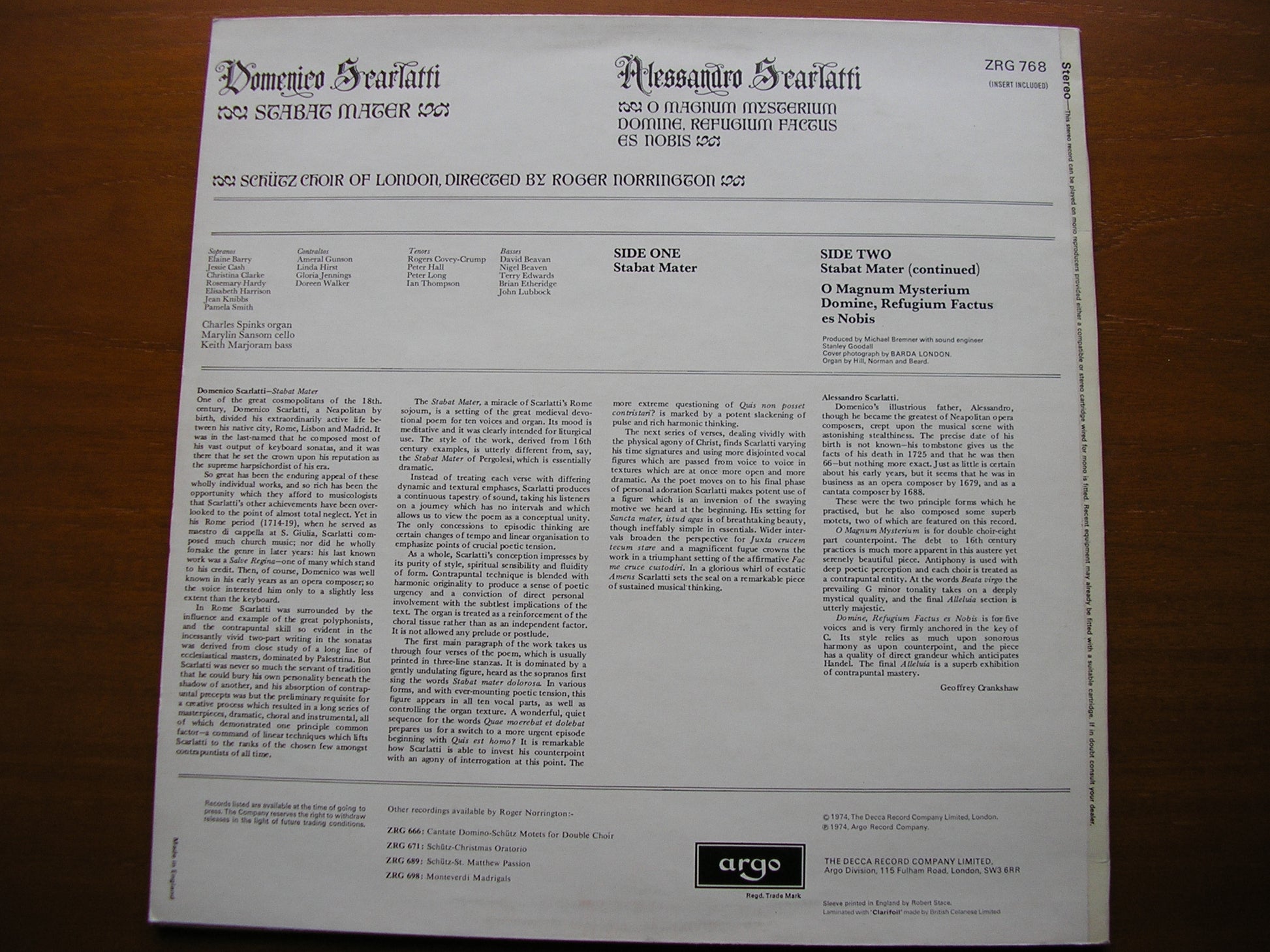 ZRG 768  DOMENICO SCARLATTI: STABAT MATER / ALESSANDRO SCARLATTI: TWO MOTETS    ROGER NORRINGTON / SCHUTZ CHOIR OF LONDON