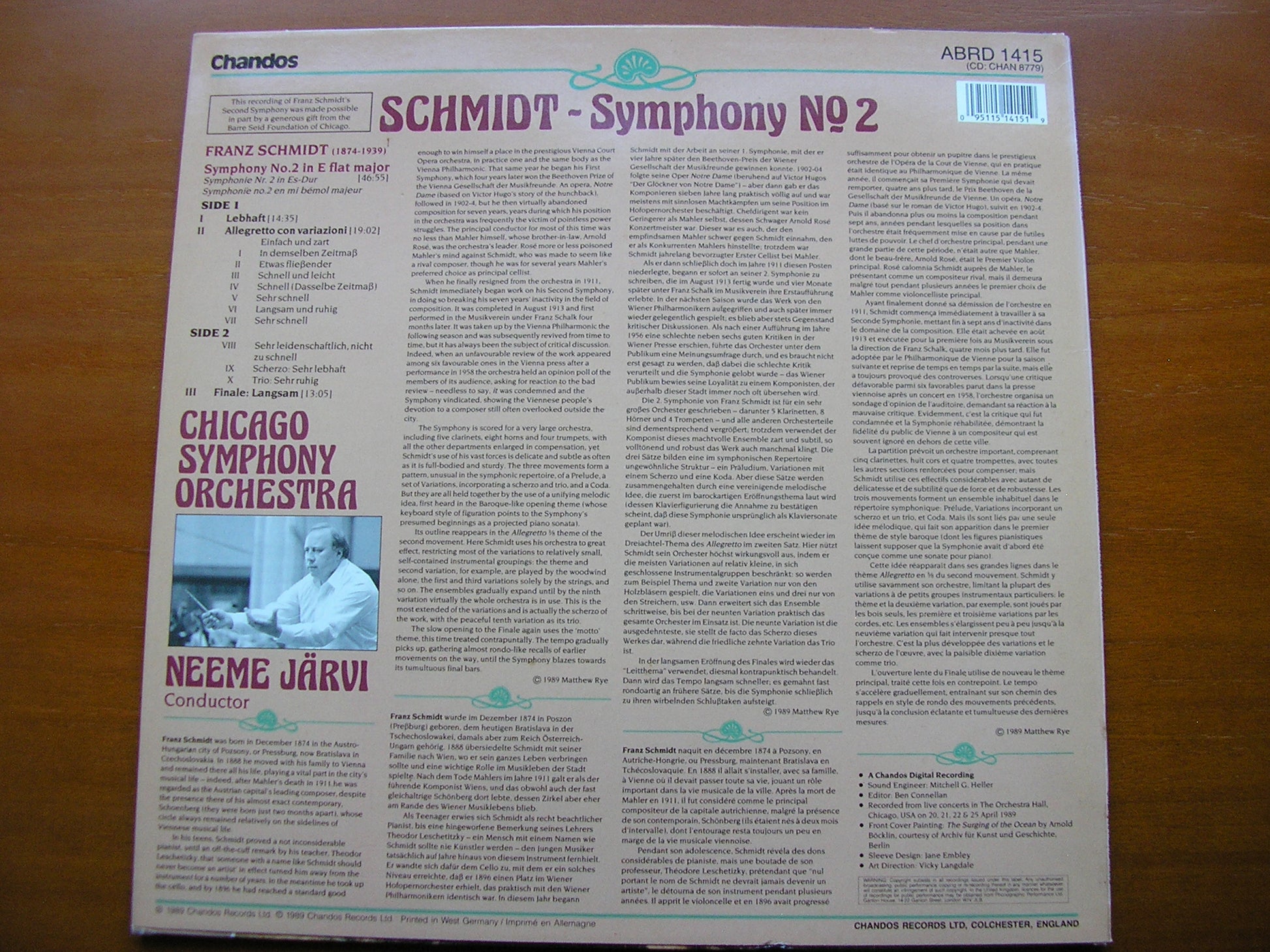 ABRD 1415  SCHMIDT: SYMPHONY No. 2    NEEME JARVI / CHICAGO SYMPHONY ORCHESTRA