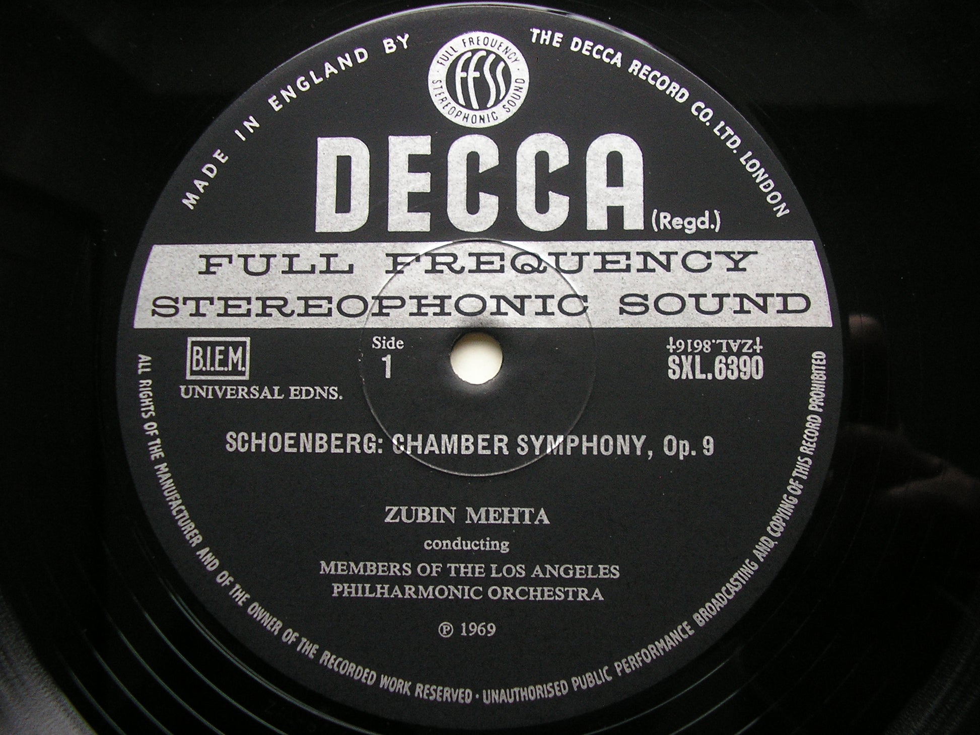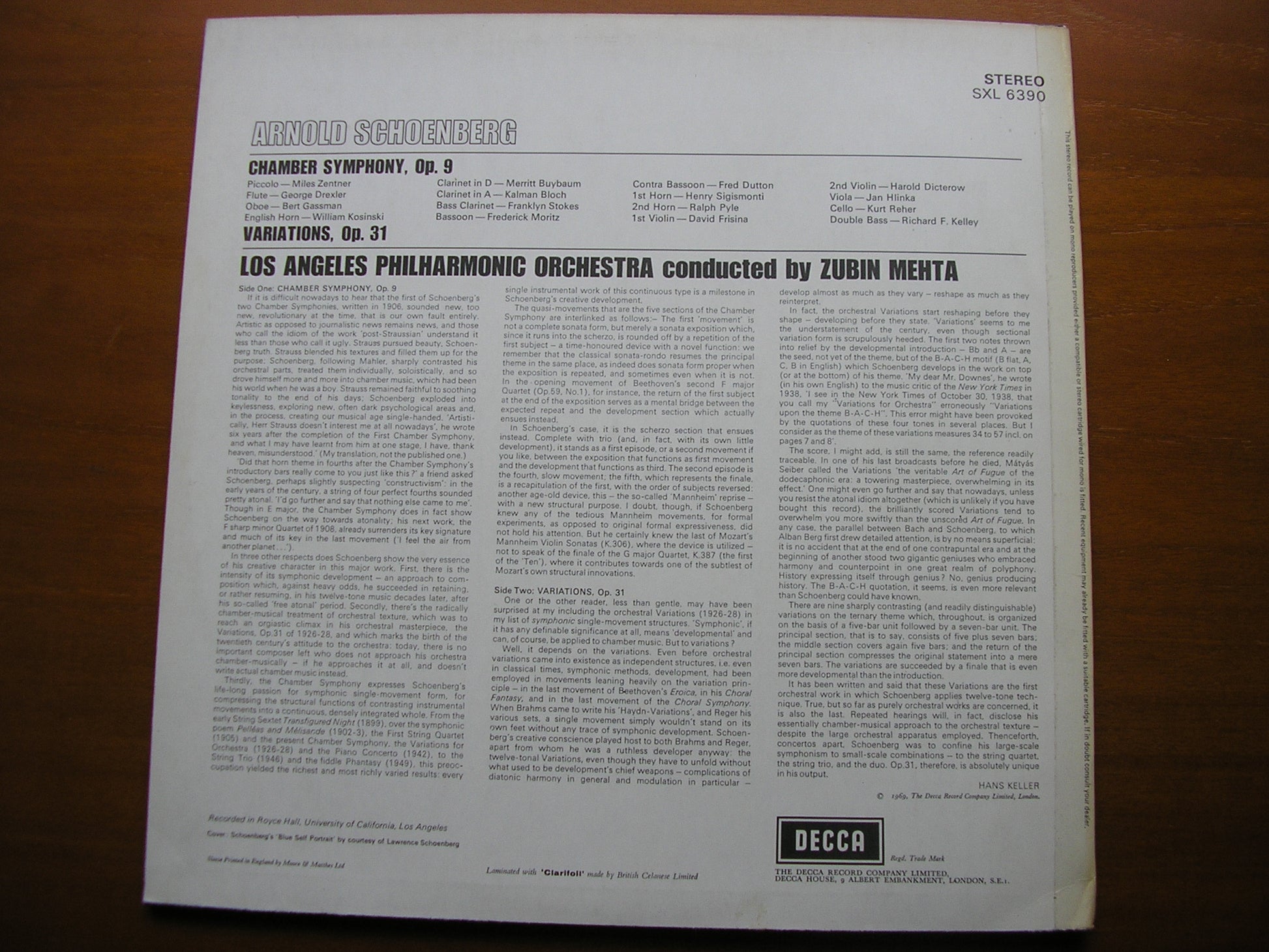 SXL 6390  SCHOENBERG: CHAMBER SYMPHONY / VARIATIONS     ZUBIN MEHTA / LOS ANGELES PHILHARMONIC ORCHESTRA