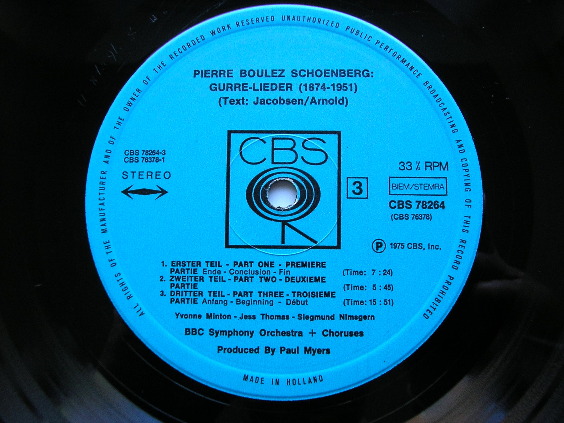 SCHOENBERG: GURRELIEDER SOLOISTS / BBC SYMPHONY / BOULEZ 2LP 78264