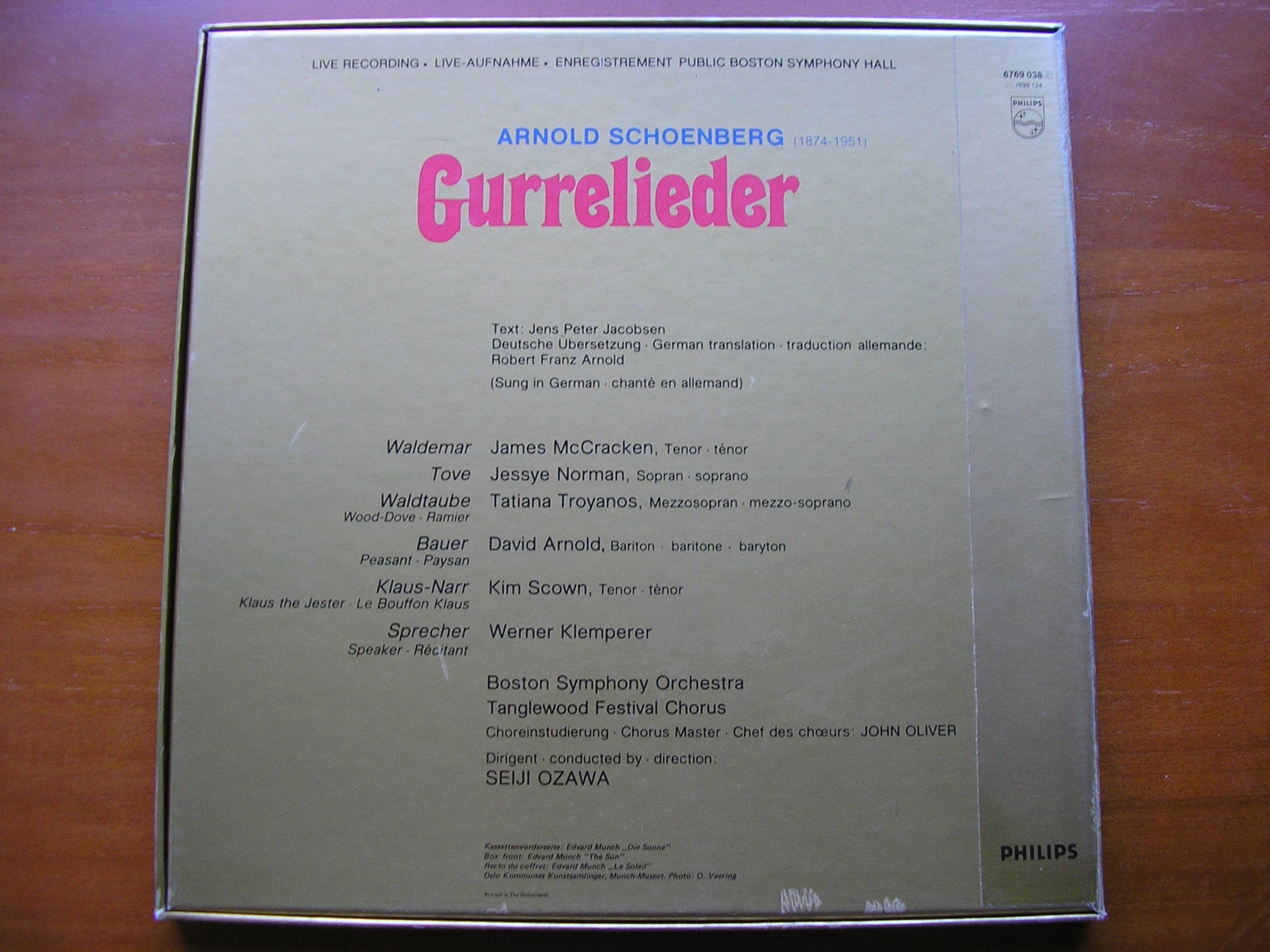 6769 038  SCHOENBERG: GURRELIEDER      SOLOISTS / BOSTON SYMPHONY PORCHESTRA / SEIJI OZAWA