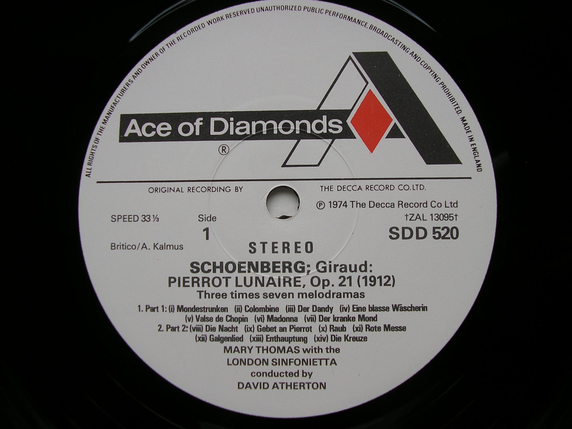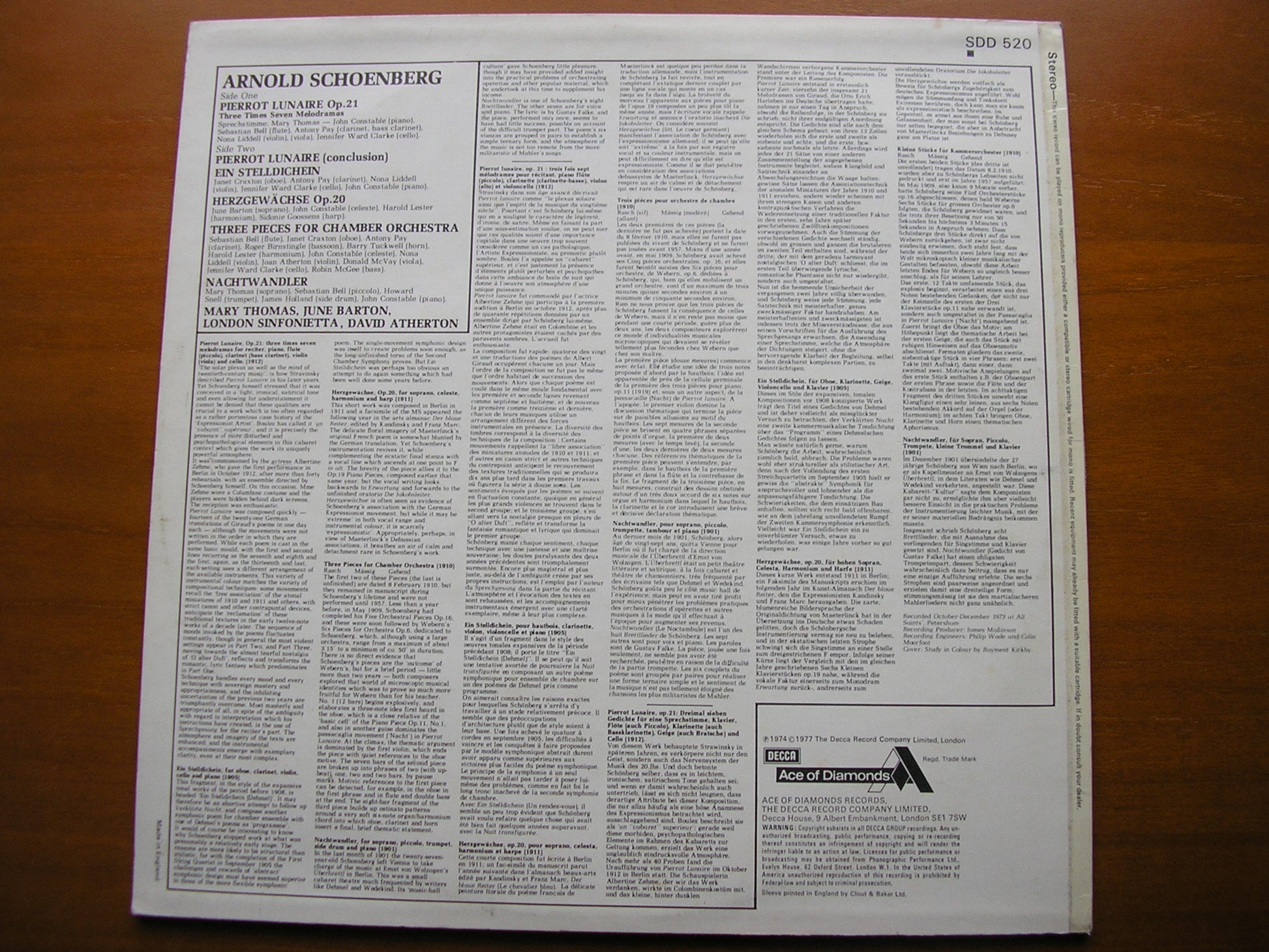 SCHOENBERG: PIERROT LUNAIRE SOLOISTS / LONDON SINFONIETTA / ATHERTON SDD 520