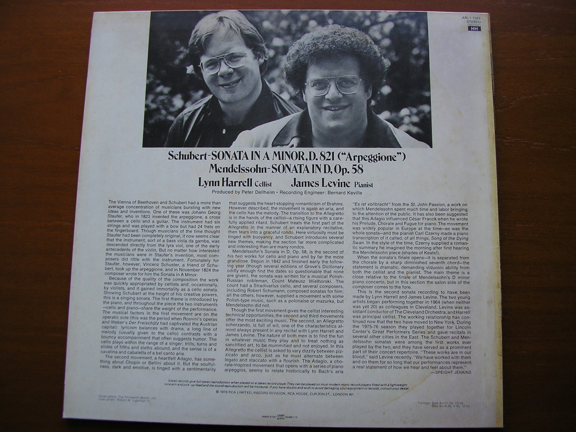 ARL1 - 1568  SCHUBERT: SONATA FOR ARPEGGIONE & PIANO D821 / MENDELSSOHN: SONATA in D Op. 58    LYNN HARRELL / JAMES LEVINE