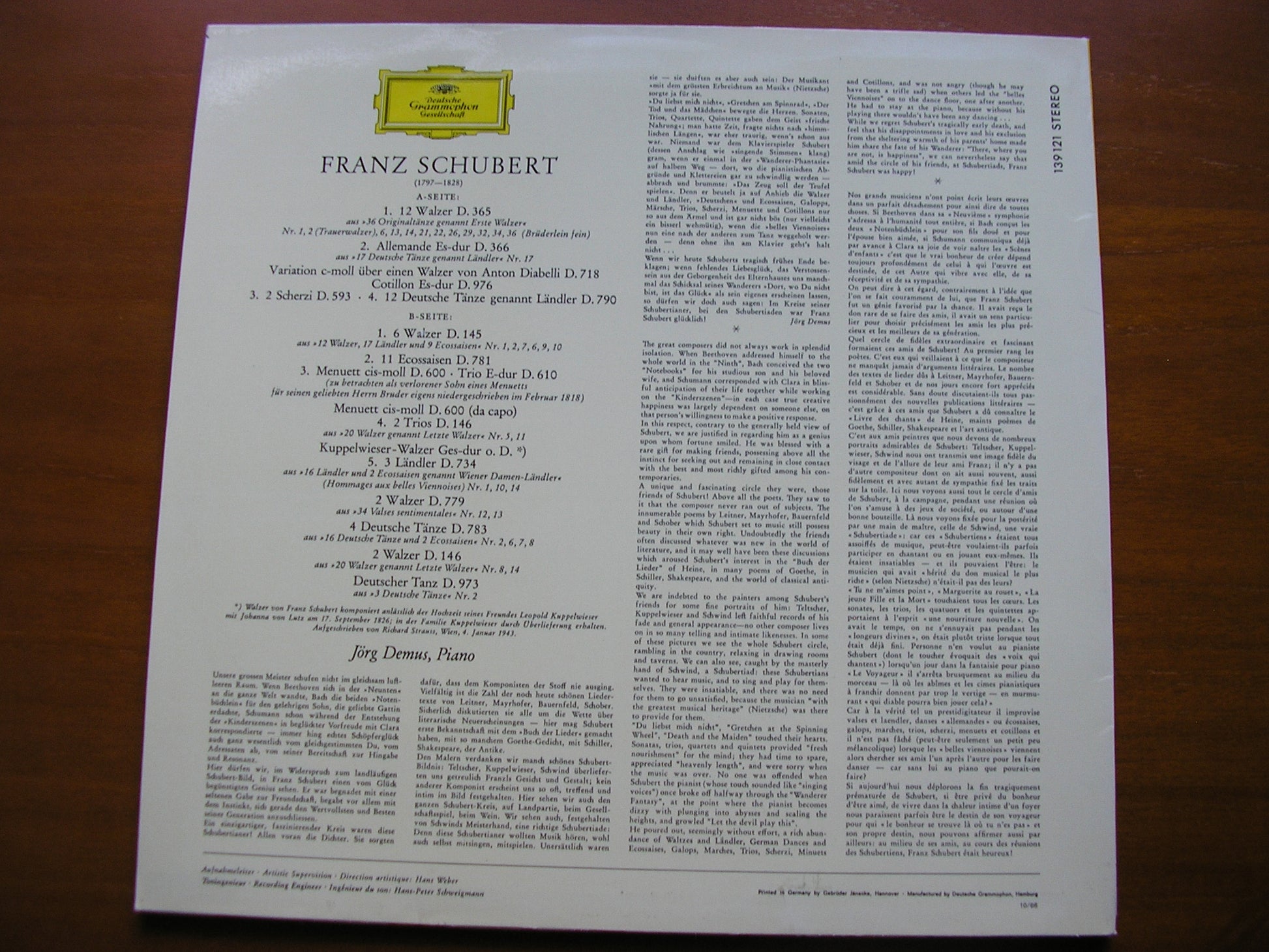 SCHUBERT: DANCES LANDLER / WALTZES / ECOSSAISEN / GERMAN DANCES JORG DEMUS 139 121