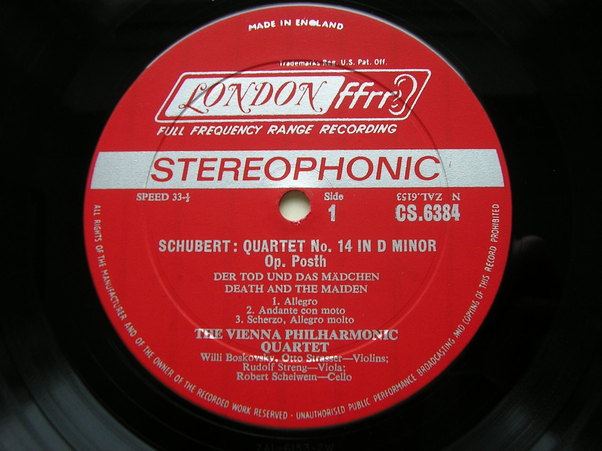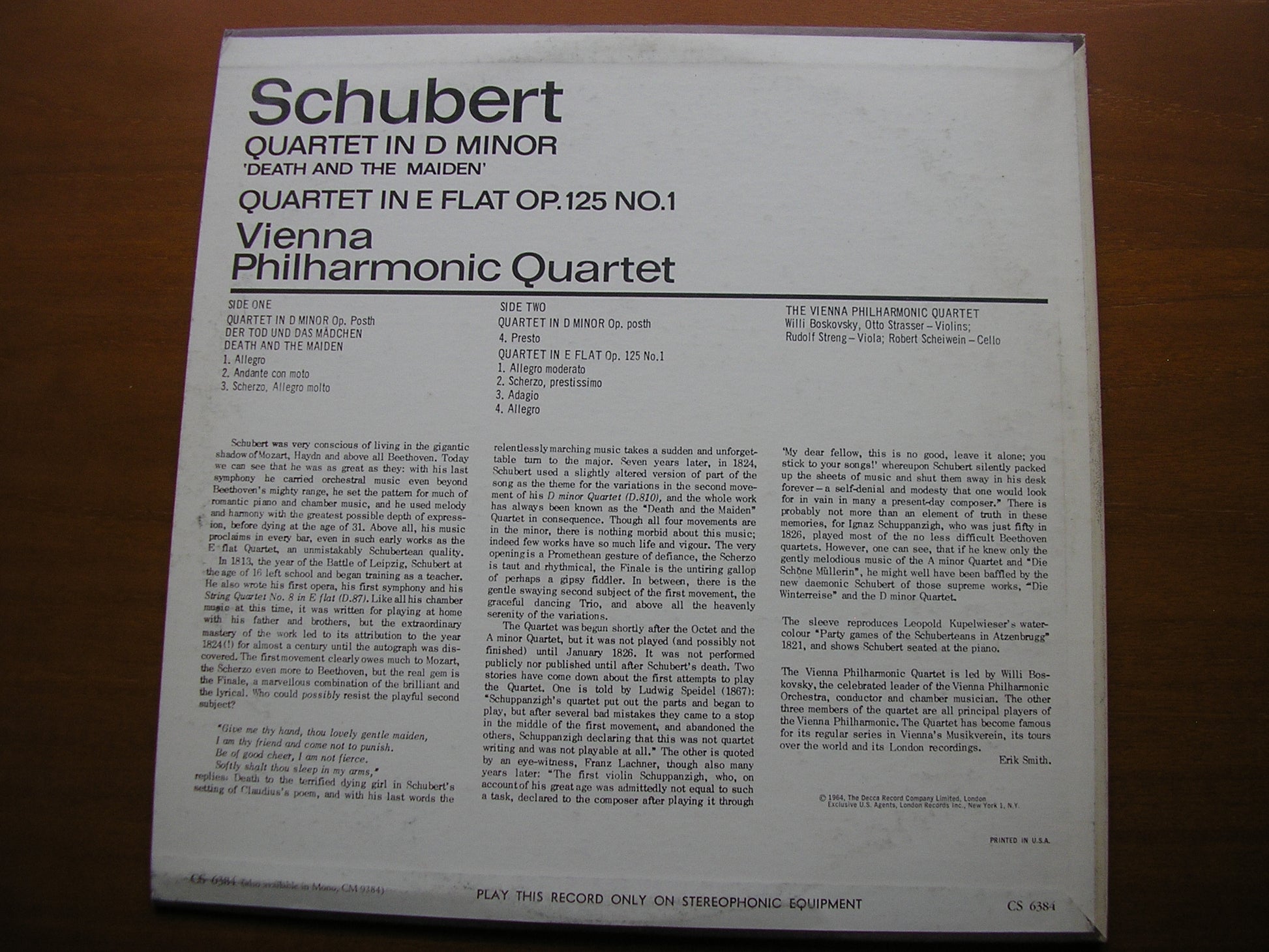 SCHUBERT: STRING QUARTET 'Death & the Maiden' / QUARTET in E Op. 125 VIENNA PHILHARMONIC QUARTET CS 6384