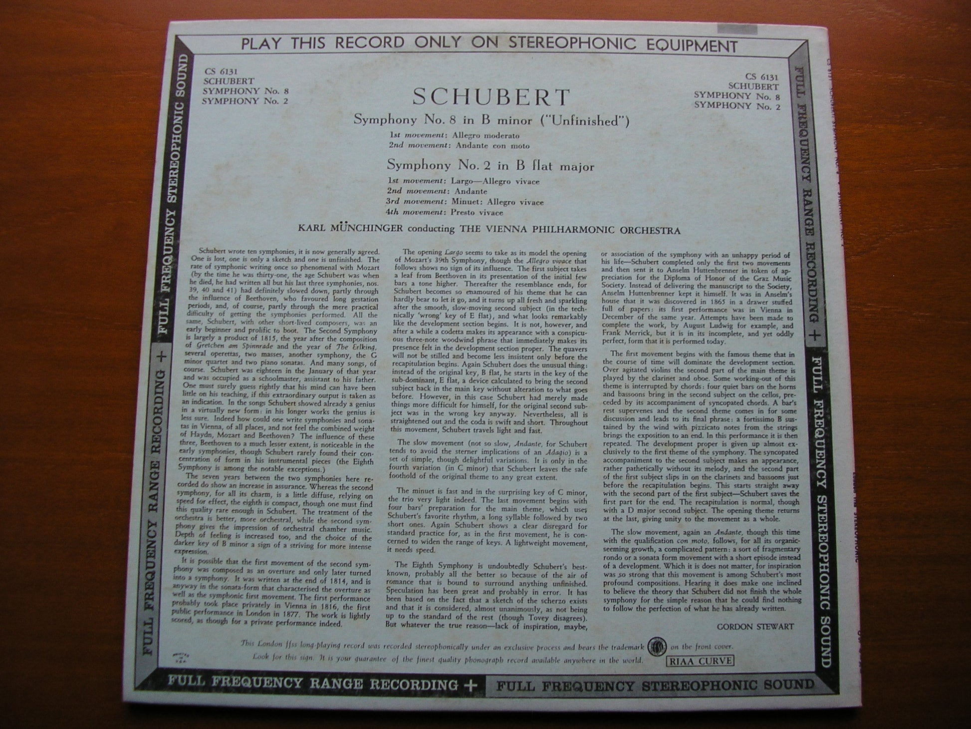 CS 6131  SCHUBERT: SYMPHONIES Nos. 2 & 8     KARL MUNCHINGER / VIENNA PHILHARMONIC ORCHESTRA