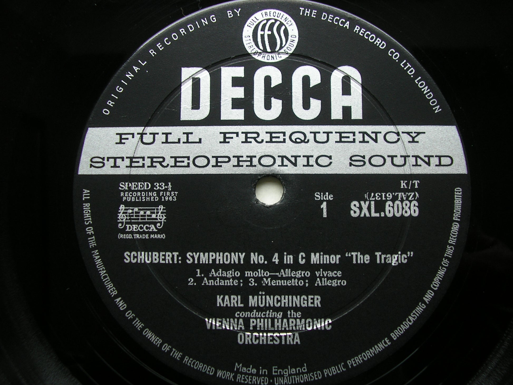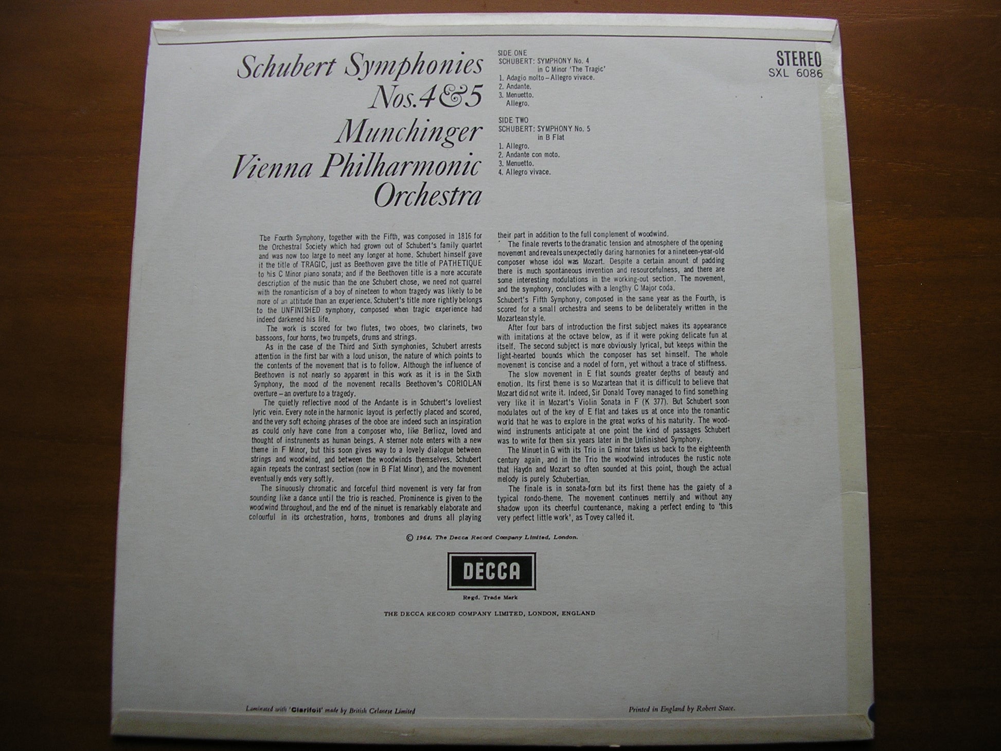 SXL 6086  SCHUBERT: SYMPHONIES Nos. 4 & 5      KARL MUNCHINGER / VIENNA PHILHARMONIC ORCHESTRA