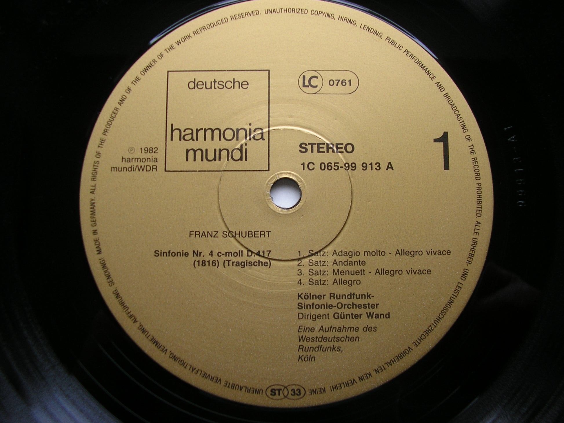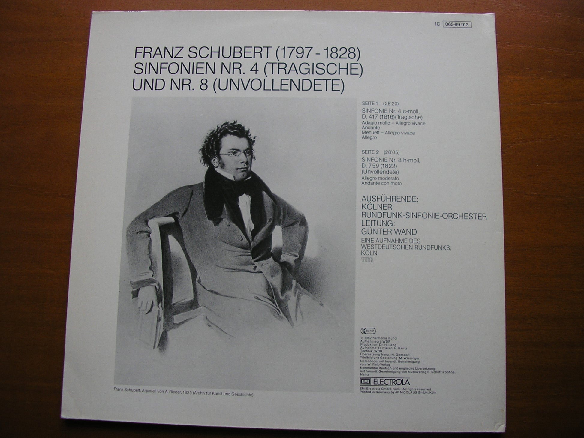065 99 913  SCHUBERT: SYMPHONIES Nos. 4 & 8      GUNTER WAND / COLOGNE RADIO SYMPHONY ORCHESTRA