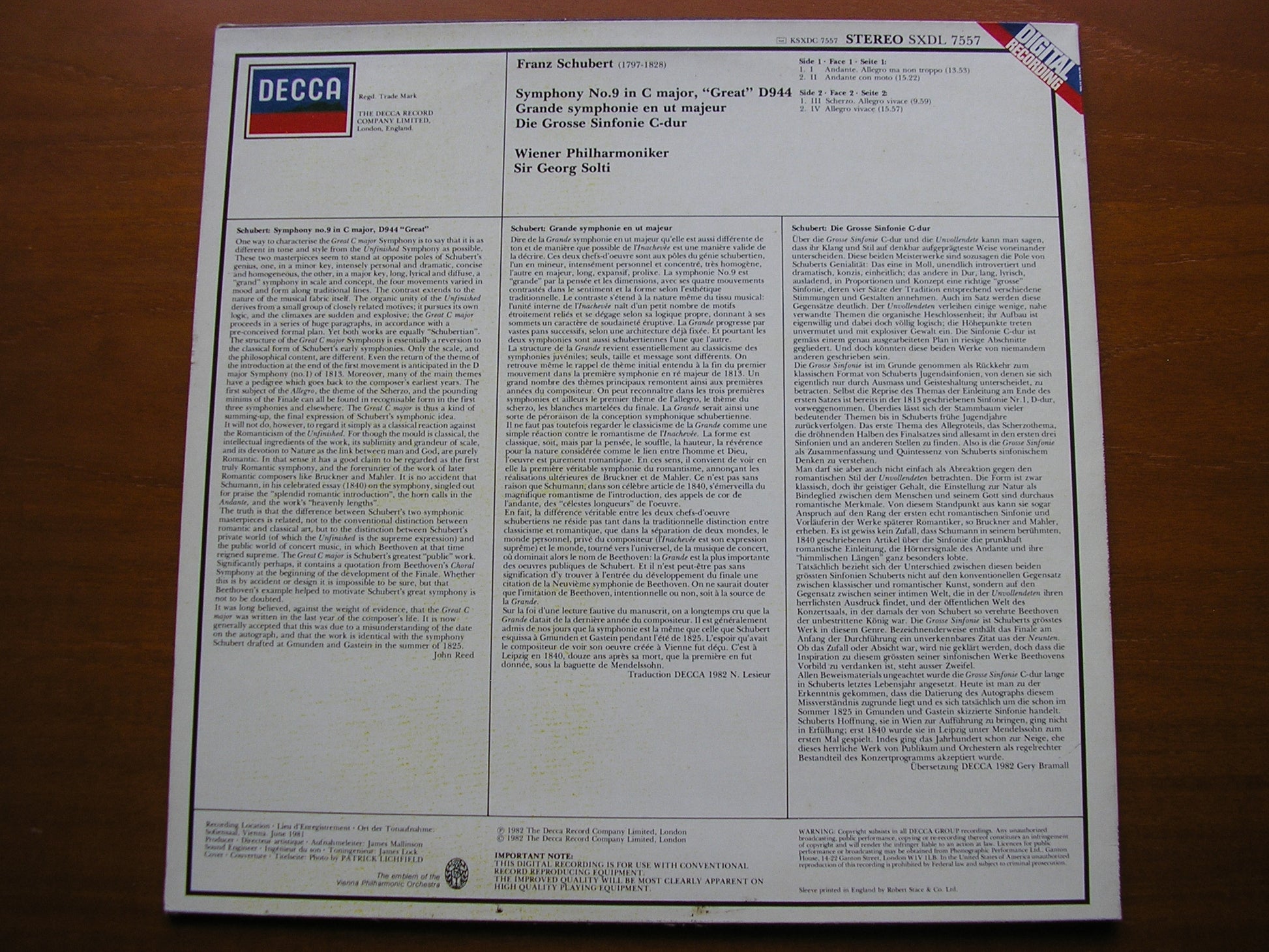 SXDL 7557  SCHUBERT: SYMPHONY No. 9     GEORG SOLTI / VIENNA PHILHARMONIC ORCHESTRA