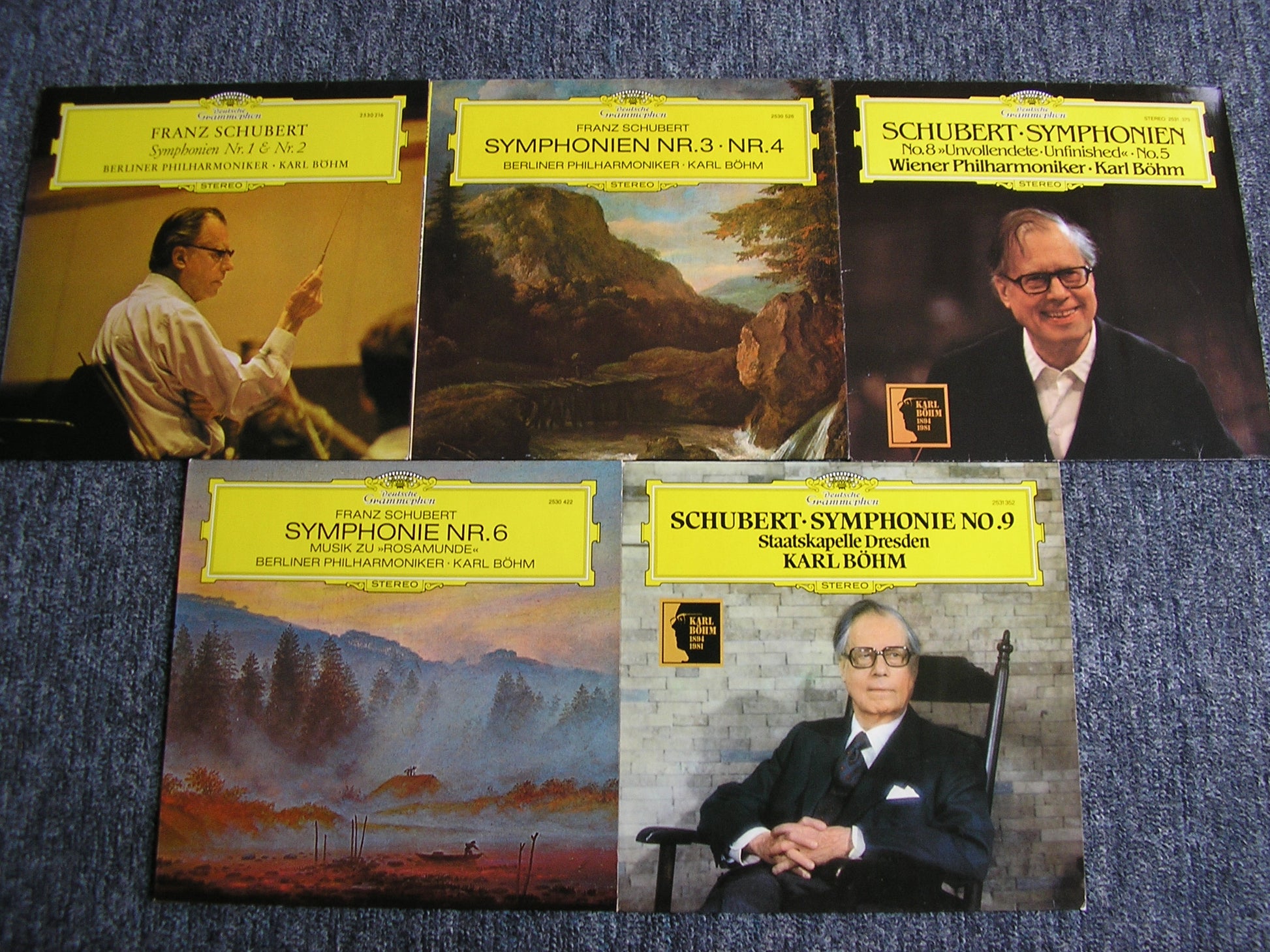2530 216 / 422 / 526 / 2531 352 / 373  SCHUBERT: THE SYMPHONIES / ROSAMUNDE excerpts       KARL BOHM / BERLIN PHILHARMONIC / VIENNA PHILHARMONIC / DRESDEN STATE ORCHESTRA