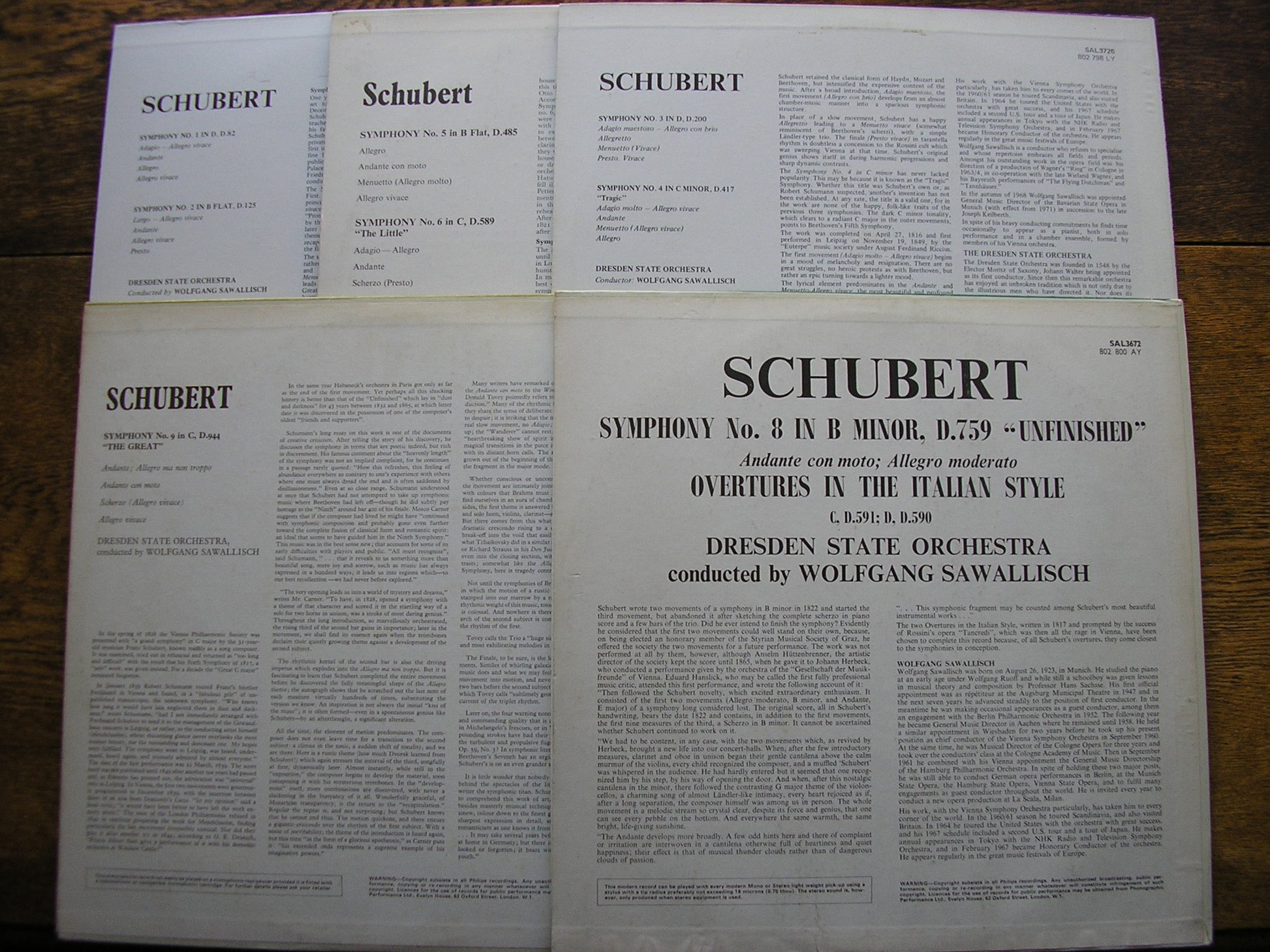 SAL 3672 / 3679 / 3702 / 3726 / 3733  SCHUBERT: THE SYMPHONIES / TWO OVERTURES IN THE ITALIAN STYLE D590 & D591    WOLFGANG SAWALLISCH / DRESDEN STATE ORCHESTRA