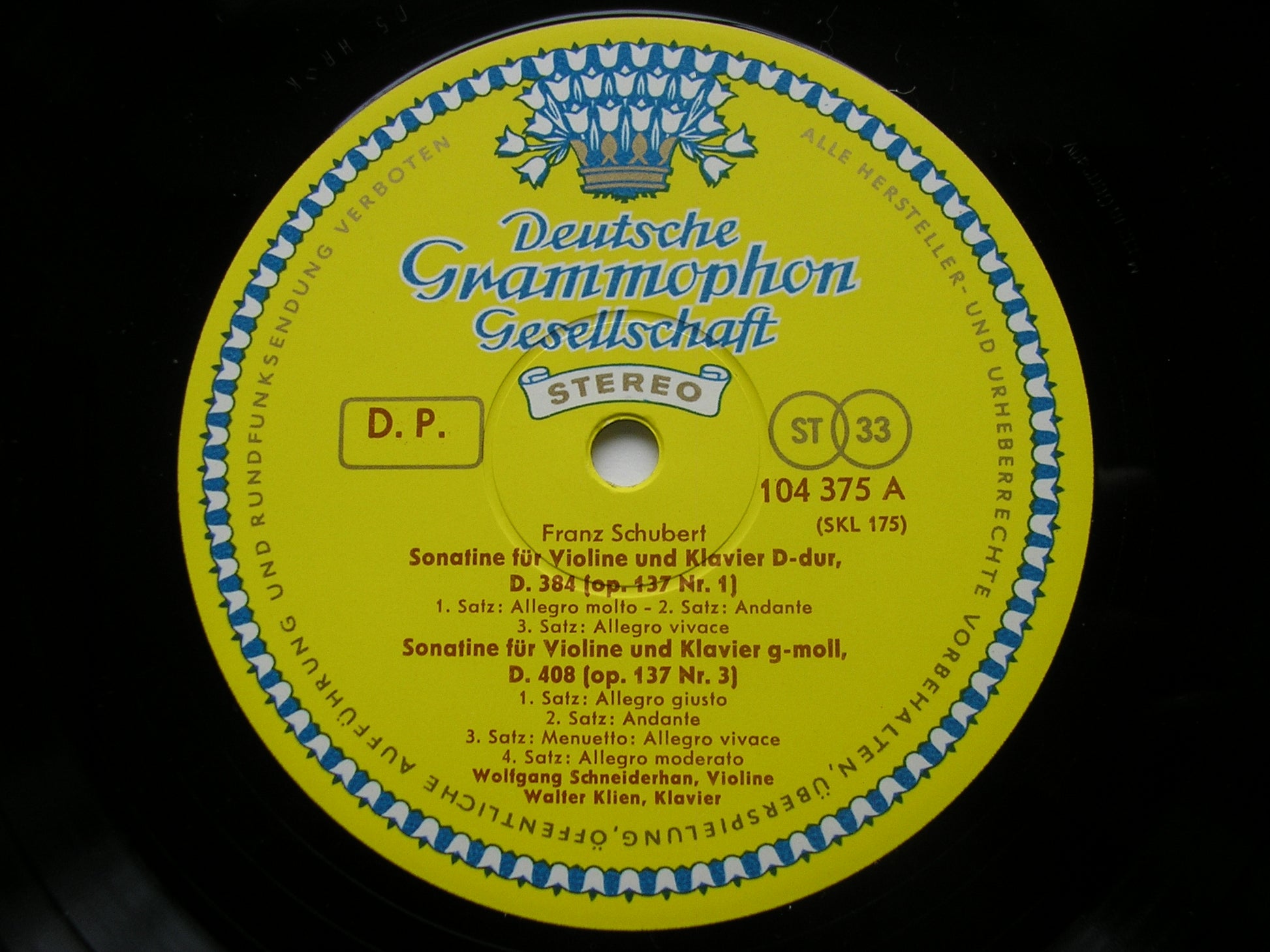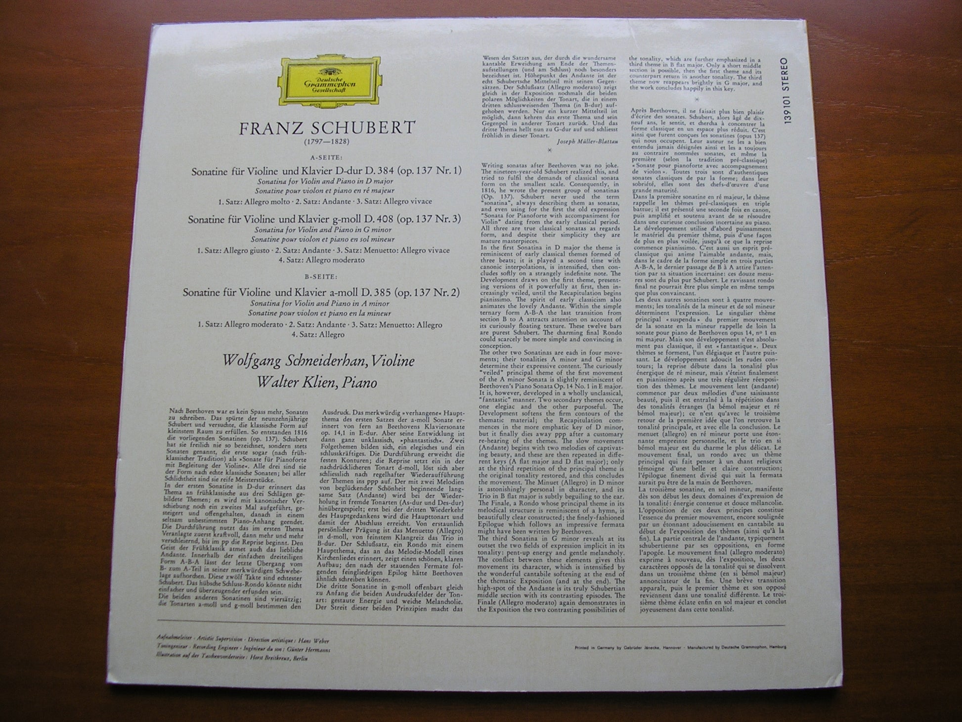 139 101  SCHUBERT: SONATINAS D384 / D385 / D408    WOLFGANG SCHNEIDERHAN / WALTER KLEIN