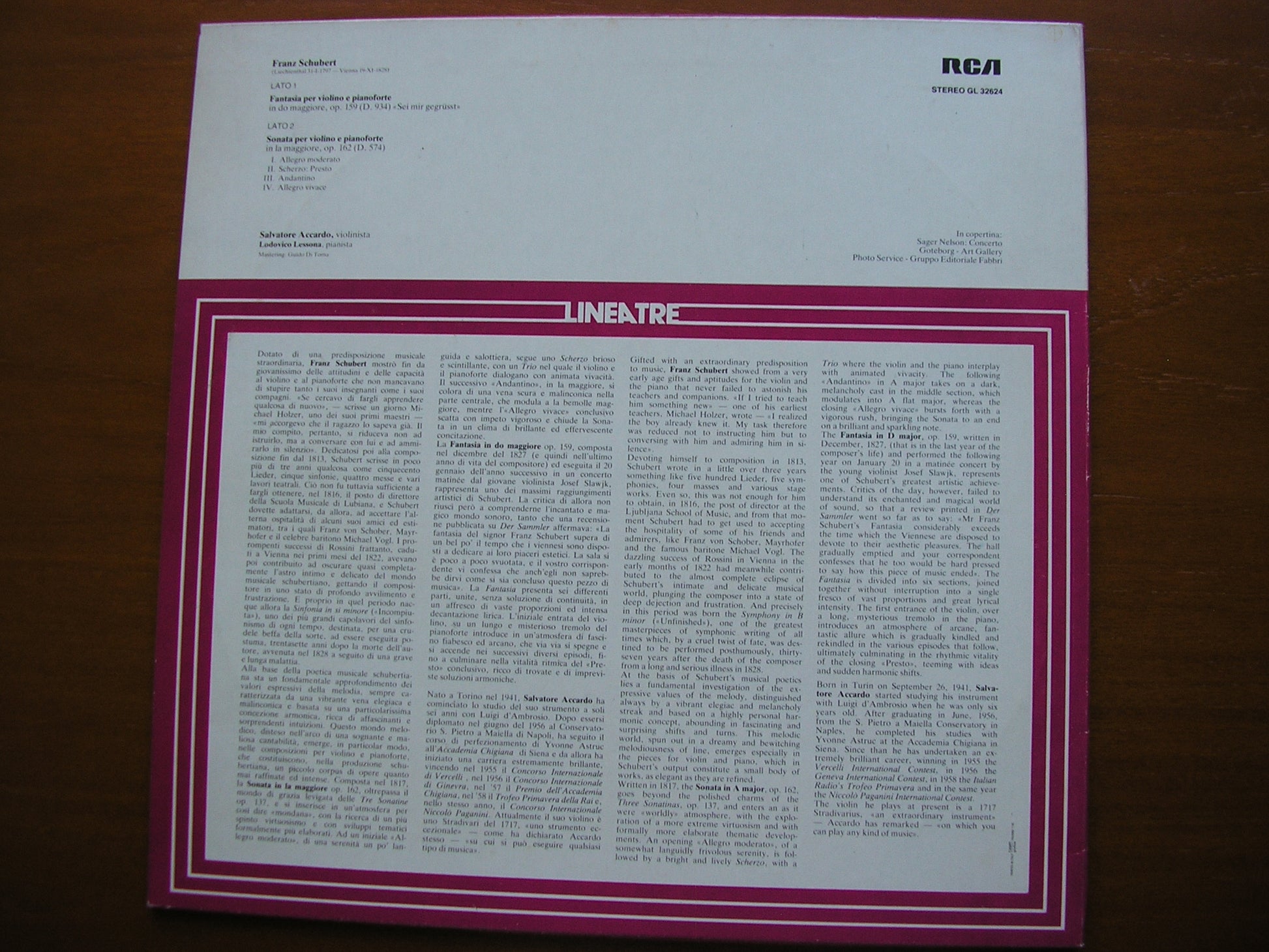 SCHUBERT: VIOLIN SONATA D574 / FANTASIA D934 SALVATORE ACCARDO / LODOVICO LESSONA GL 32624