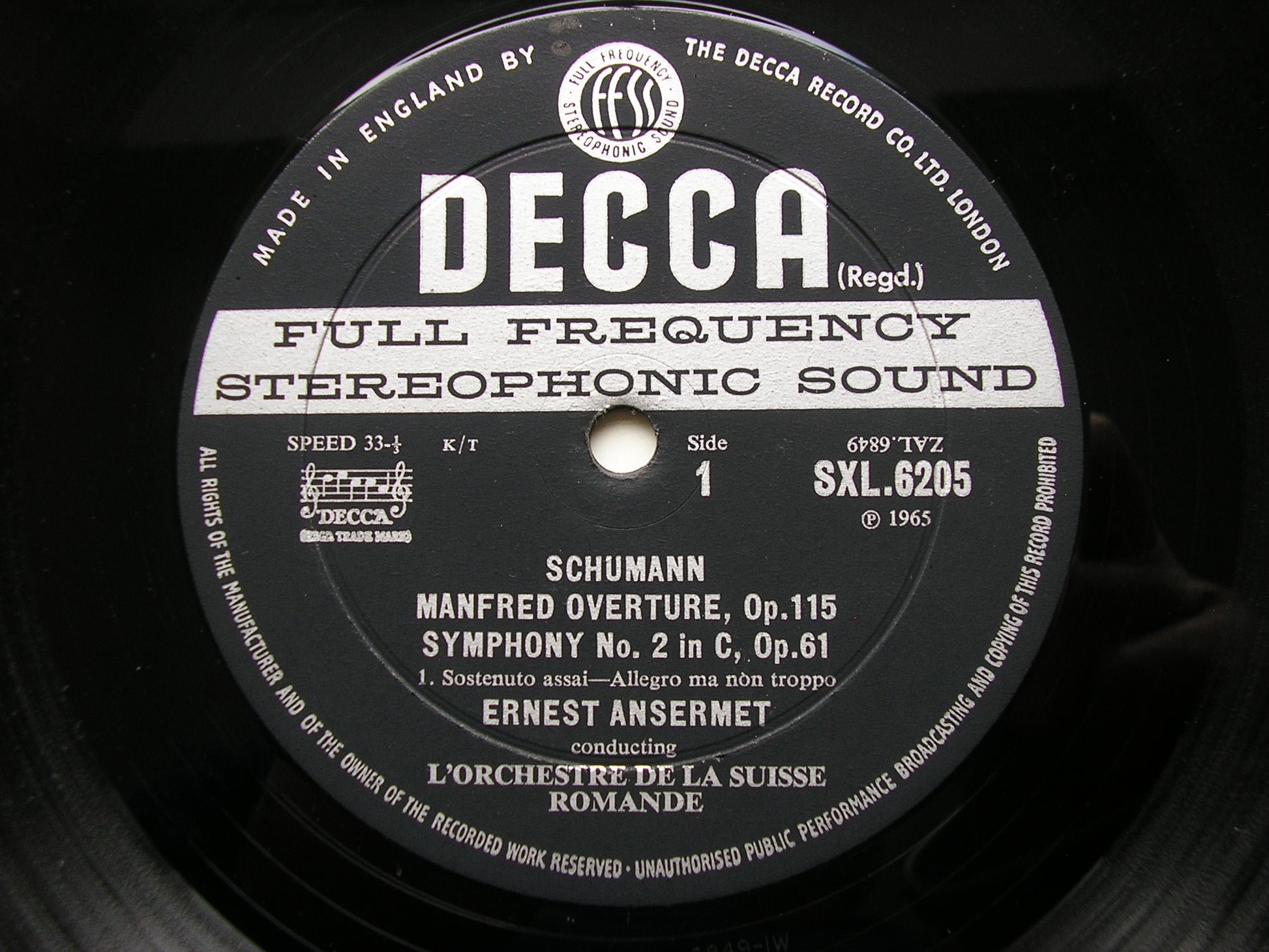 SXL 6205 SCHUMANN: SYMPHONY No. 2 / MANFRED OVERTURE        ERNEST ANSERMET / SUISSE ROMANDE ORCHESTRA