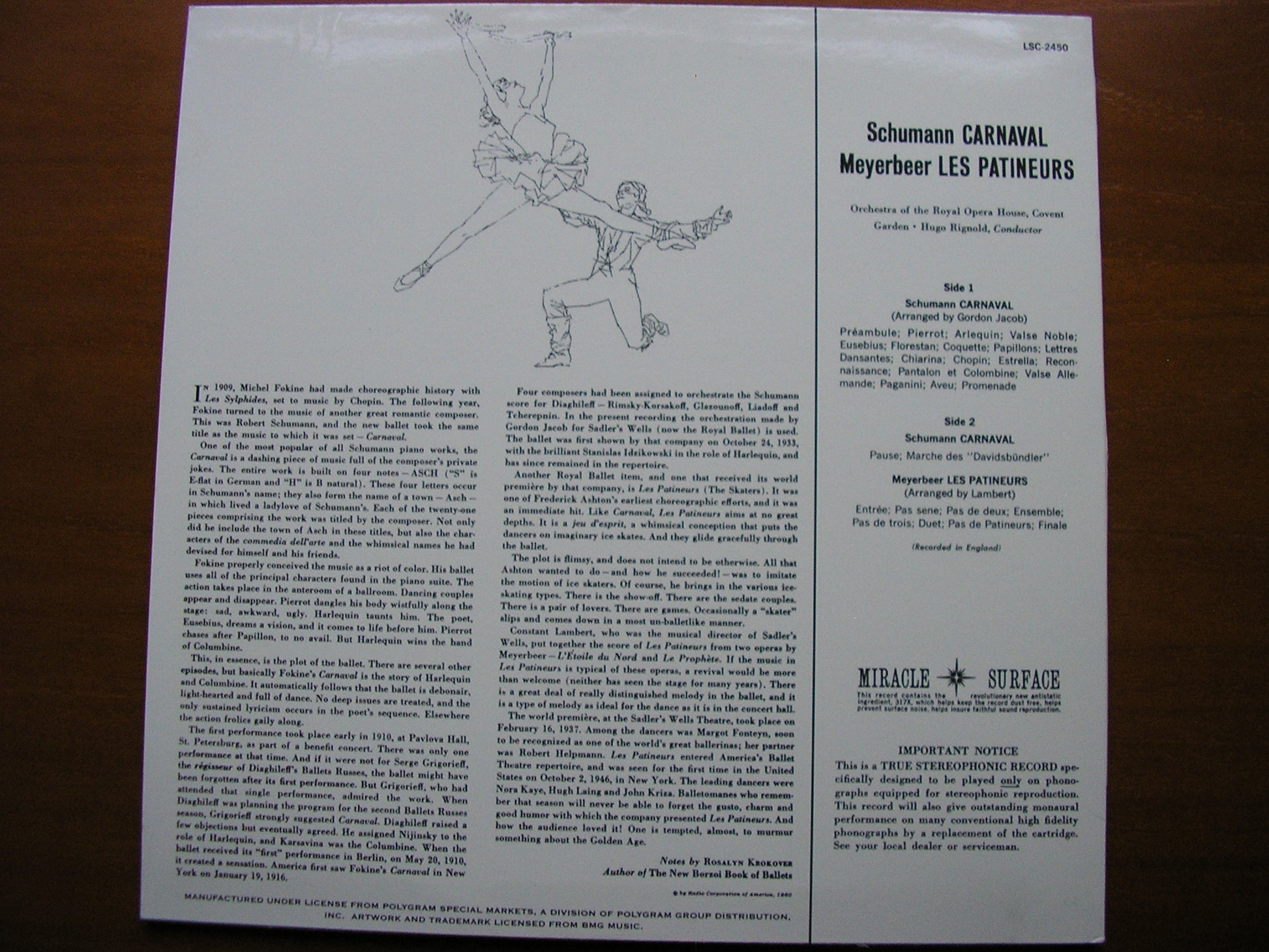 LSC 2450  SCHUMANN: CARNAVAL / MEYERBEER: LES PATINEURS       HUGO RIGNOLD / ORCHESTRA OF THEV ROYAL OPERA HOUSE COVENT GARDEN
