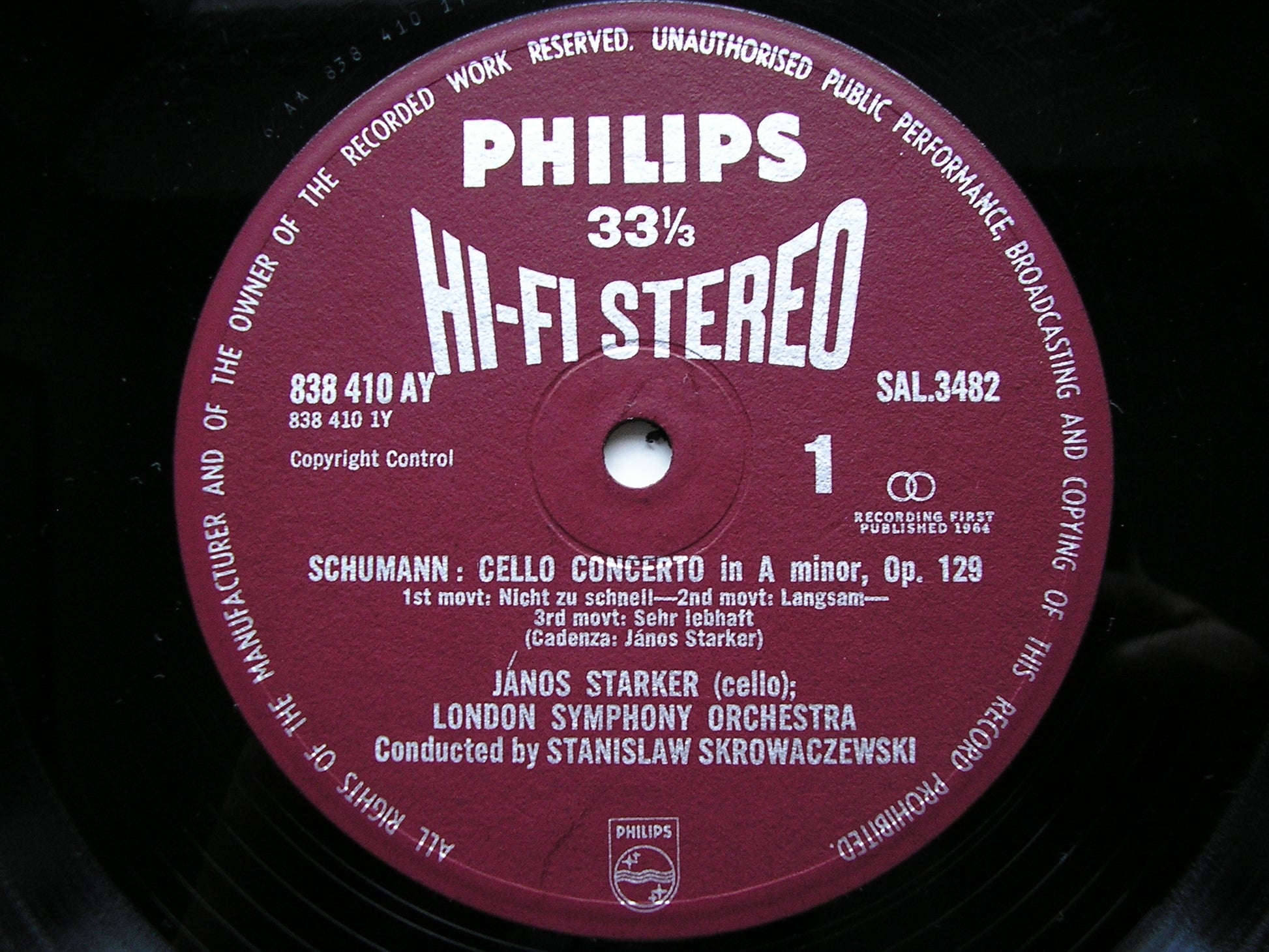 SAL 3482  SCHUMANN: CELLO CONCERTO / LALO: CELLO CONCERTO     JANOS STARKER / LONDON SYMPHONY ORCHESTRA / STANISLAW SKROWACZEWSKI