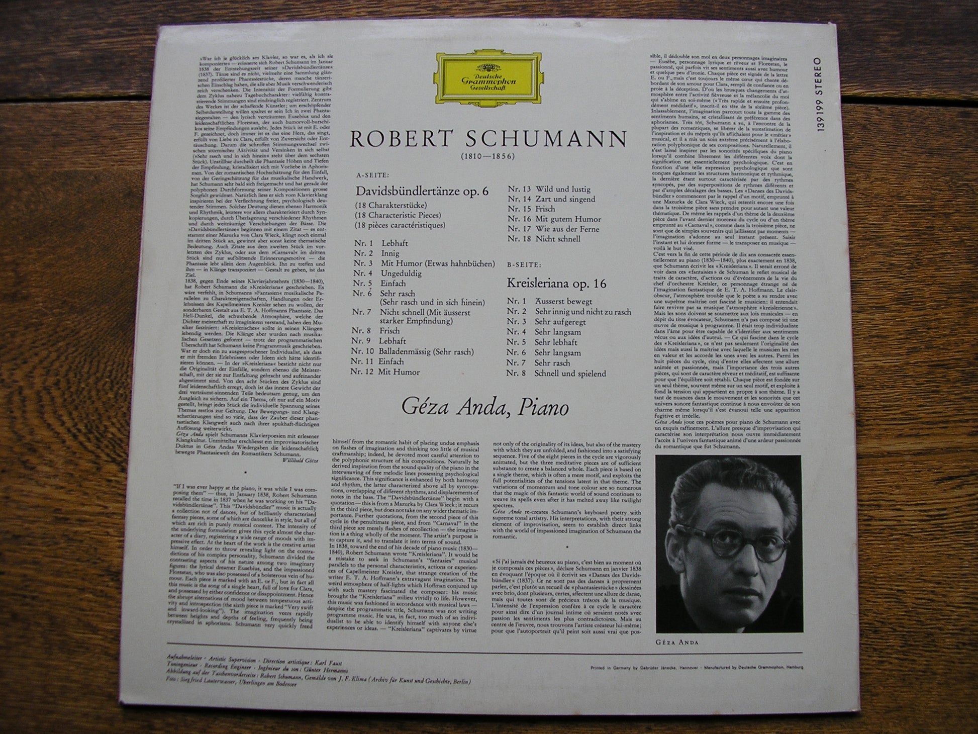139 199  SCHUMANN: DAVIDSBUNDLERTANZE Op. 6 / KREISLERIANA Op. 16   GEZA ANDA