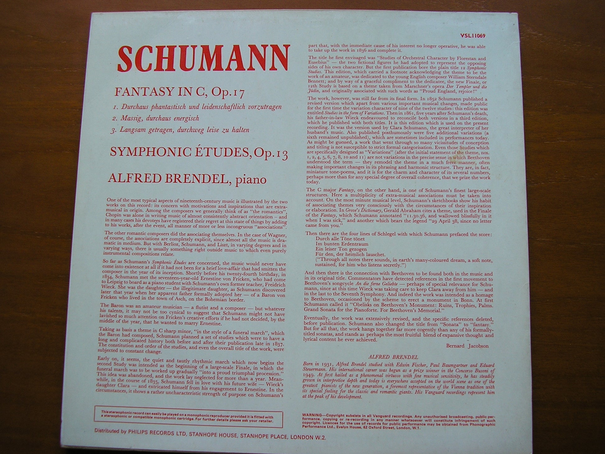 VSL 11069  SCHUMANN: FANTASY Op. 17 / SYMPHONIC ETUDES       ALFRED BRENDEL