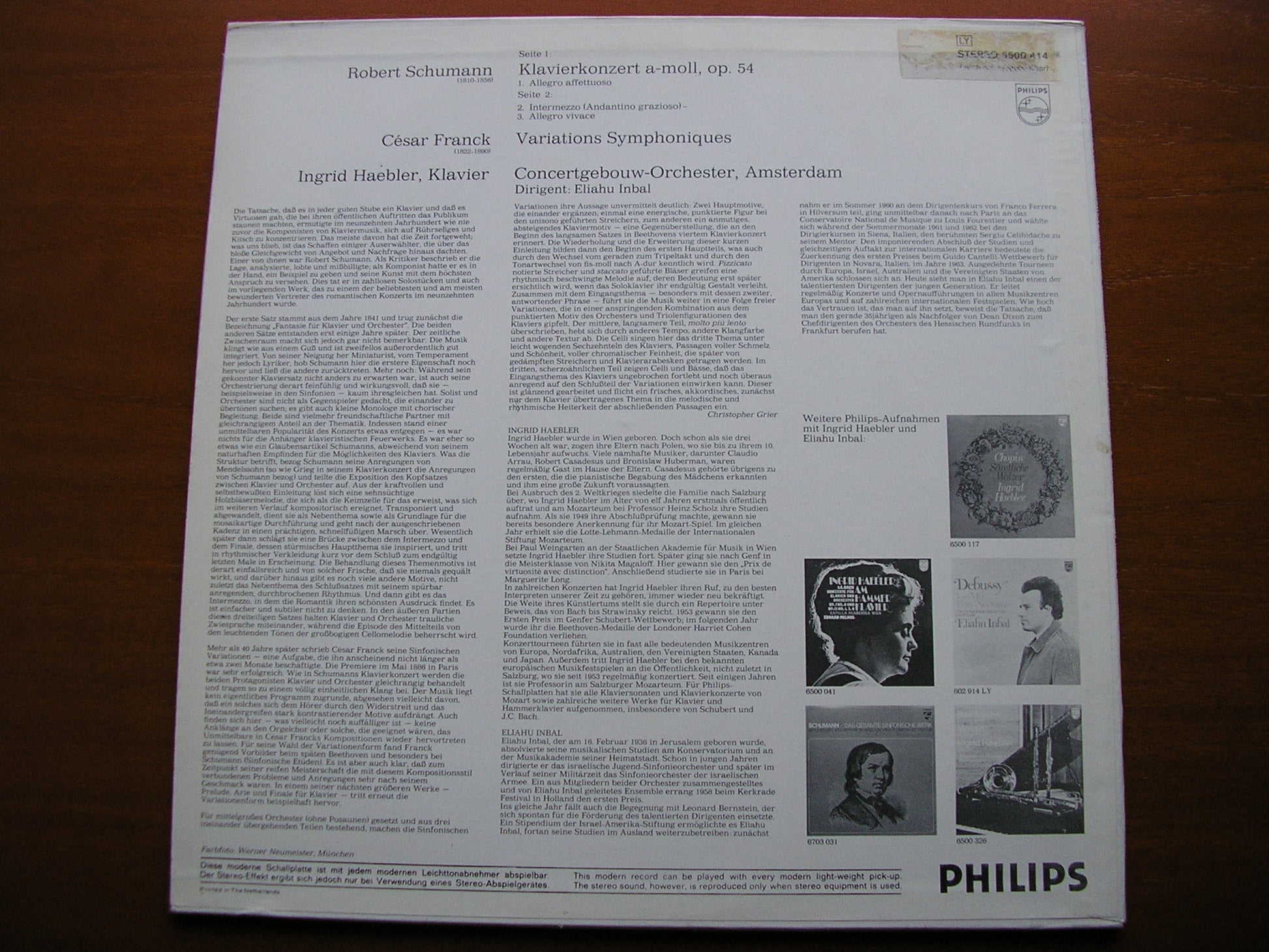 6500 414  SCHUMANN: PIANO CONCERTO / FRANCK: SYMPHONIC VARIATIONS    INGRID HAEBLER / CONCERTGEBOUW ORCHESTRA AMSTERDAM / ELIAHU INBAL