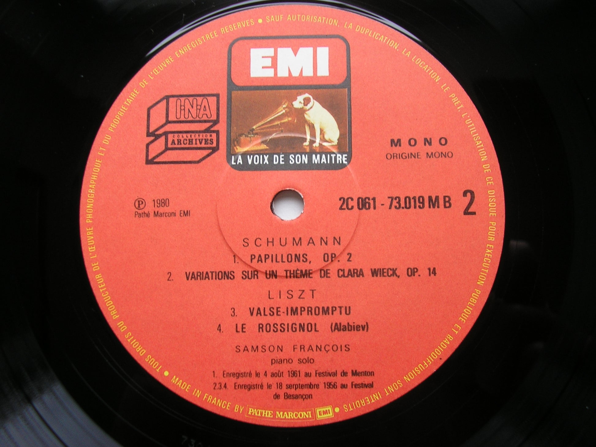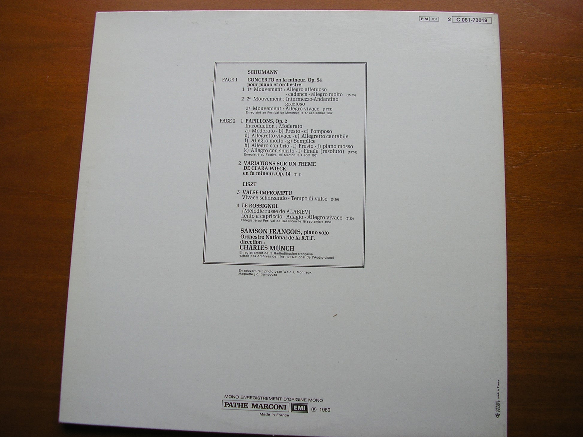 061 73019  SCHUMANN: PIANO CONCERTO / PAPILLONS / WIECK VARIATIONS / LISZT: LE ROSSIGNOL / VALSE-IMPROMPTU   SAMSON FRANCOIS / FRENCH NATIONAL RADIO ORCHESTRA / CHARLES MUNCH