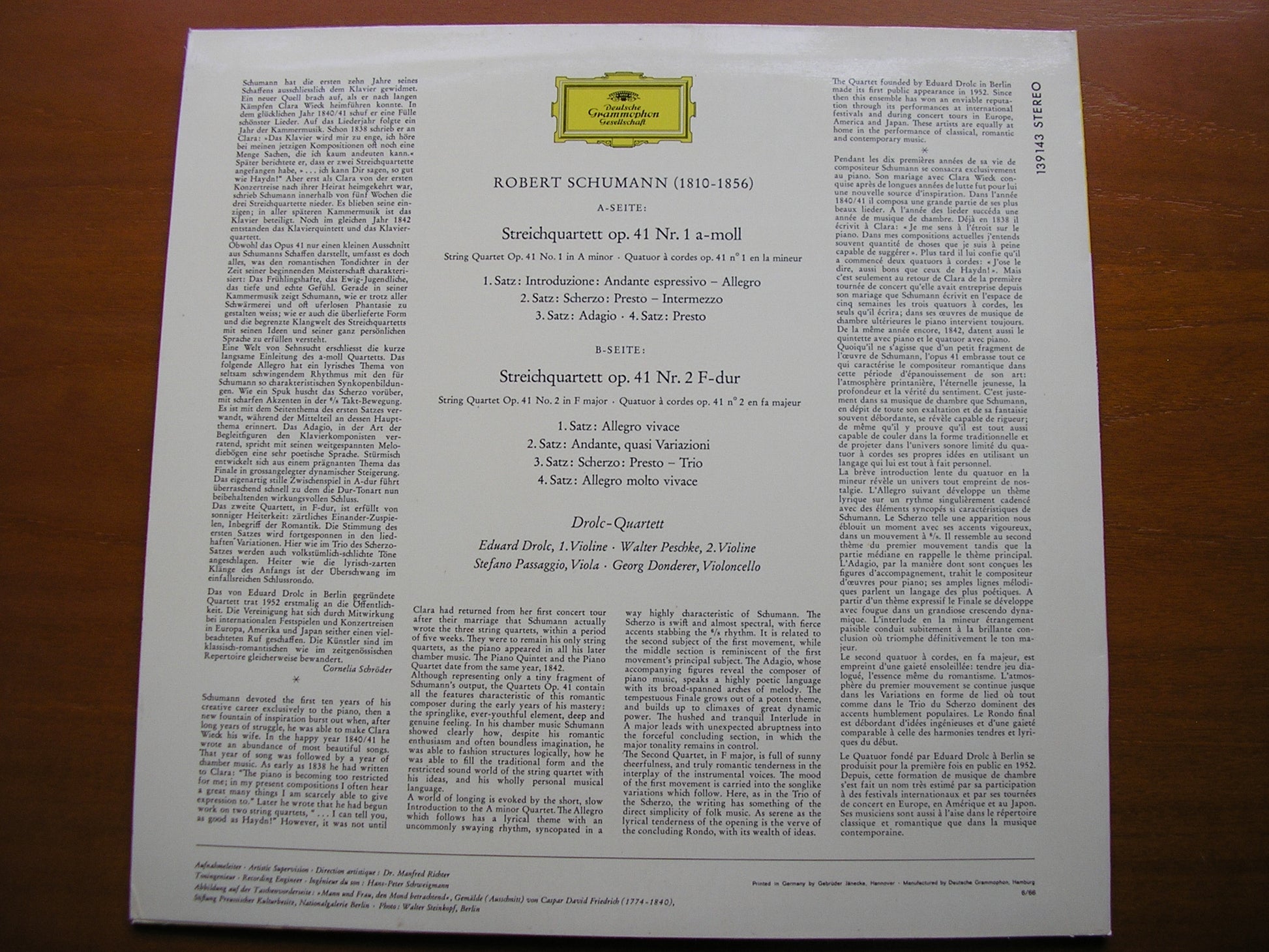 139 143  SCHUMANN: STRING QUARTETS Op. 41 Nos. 1 & 2      DROLC QUARTET
