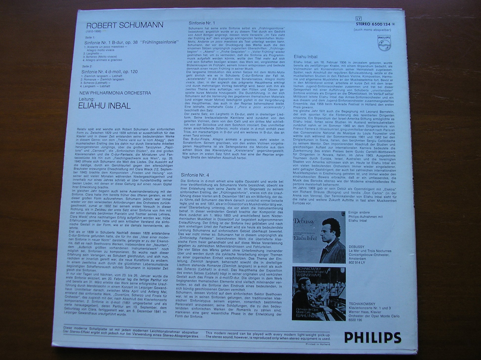6500 134  SCHUMANN: SYMPHONIES Nos. 1 & 4      ELIAHU INBAL / NEW PHILHARMONIA ORCHESTRA