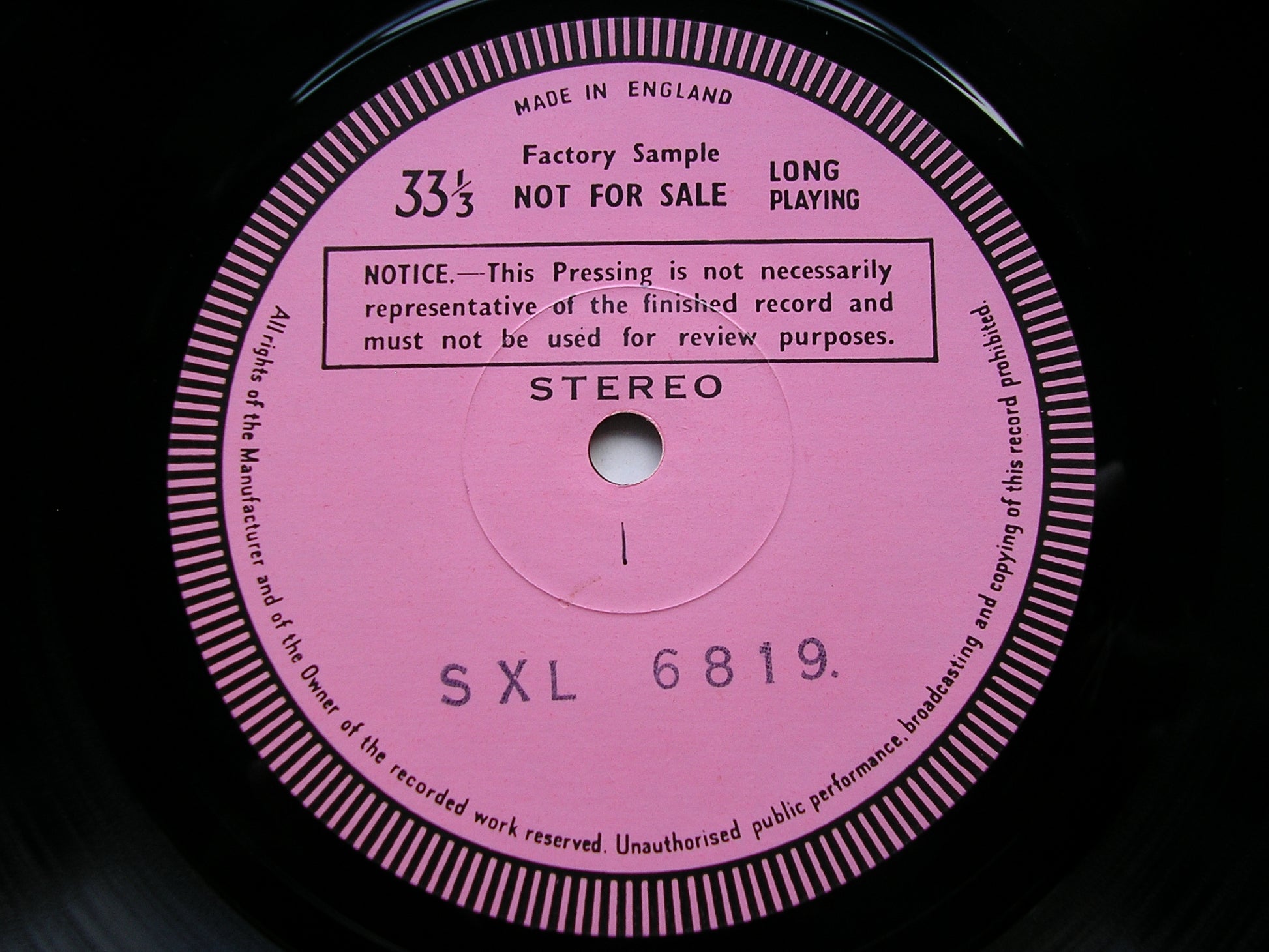We do our very best to grade records honestly and accurately, but we do occasionally make mistakes, and our priority is to rectify problems to the satisfaction of the customer. With a stock of over 30,000 LPs we do not claim to have auditioned every record in our catalogue, but every LP is examined carefully during the listing process and any suspicious looking marks are auditioned before grading.