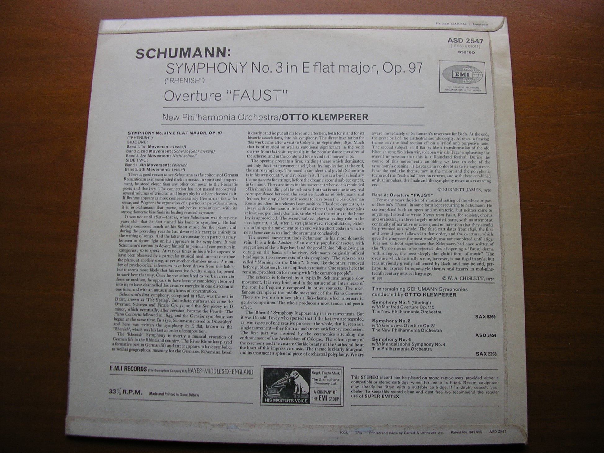 ASD 2547  SCHUMANN: SYMPHONY No. 3 / FAUST OVERTURE     OTTO KLEMPERER / NEW PHILHARMONIA ORCHESTRA