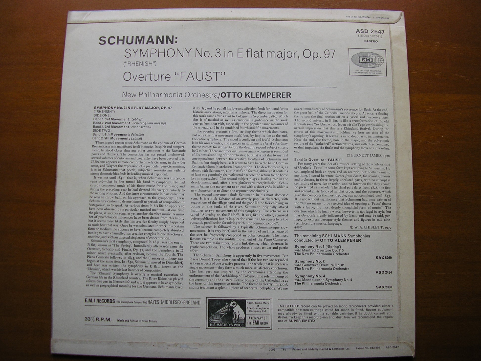 ASD 2547  SCHUMANN: SYMPHONY No. 3 / FAUST OVERTURE     OTTO KLEMPERER / NEW PHILHARMONIA ORCHESTRA