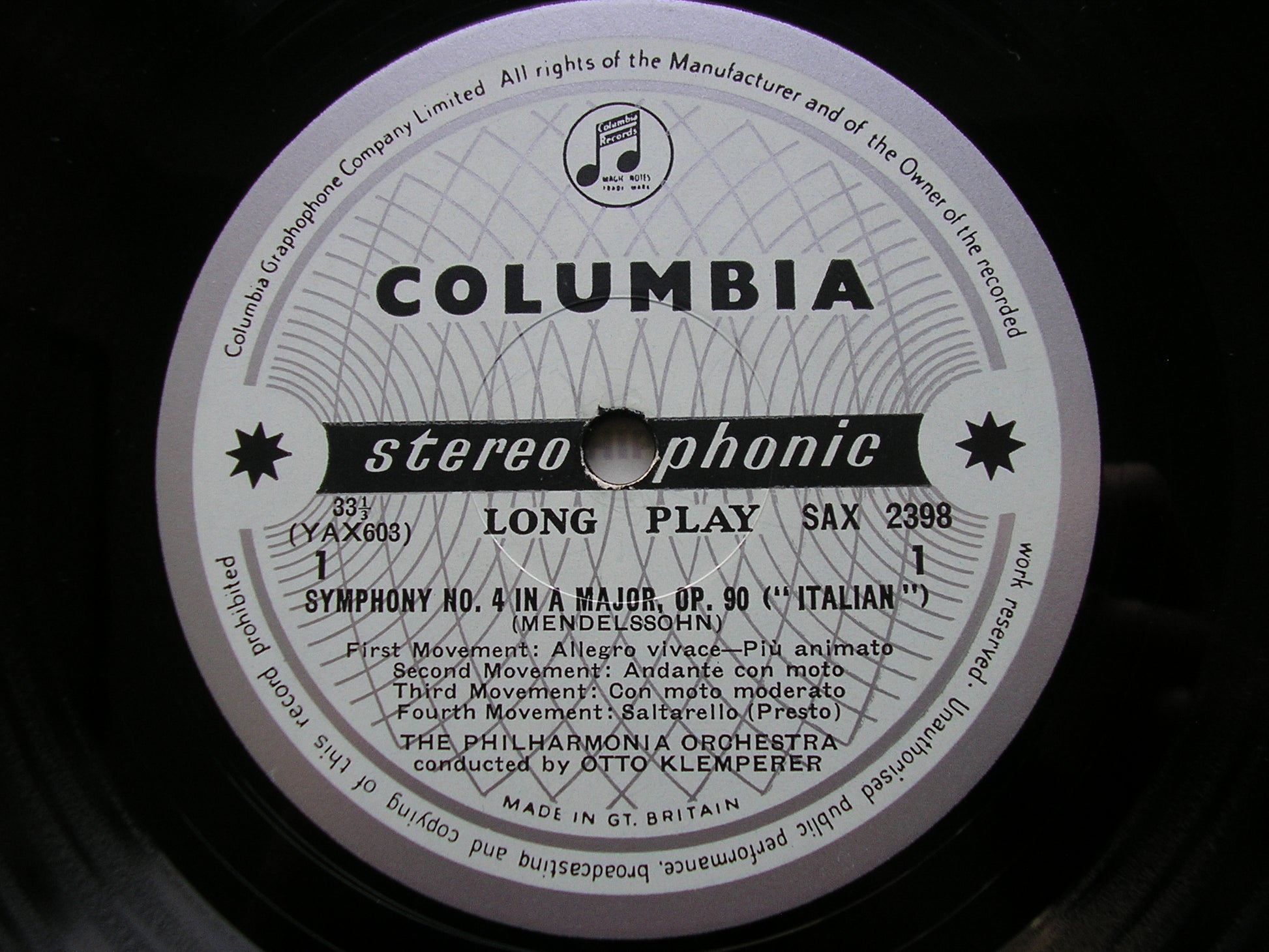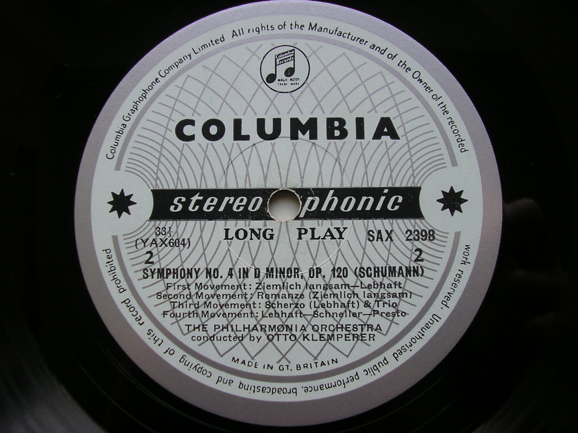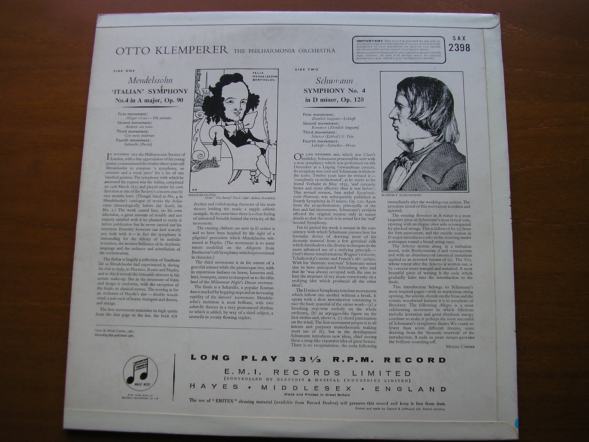 SAX 2398  SCHUMANN: SYMPHONY No. 4 / MENDELSSOHN: SYMPHONY No. 4       OTTO KLEMPERER / PHILHARMONIA ORCHESTRA
